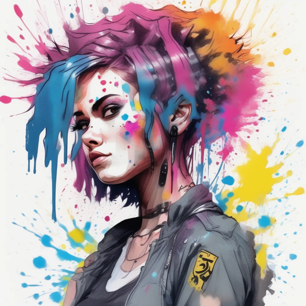 gr5pl4tStyle: Dynamic watercolor with high-contrast ink "splats."