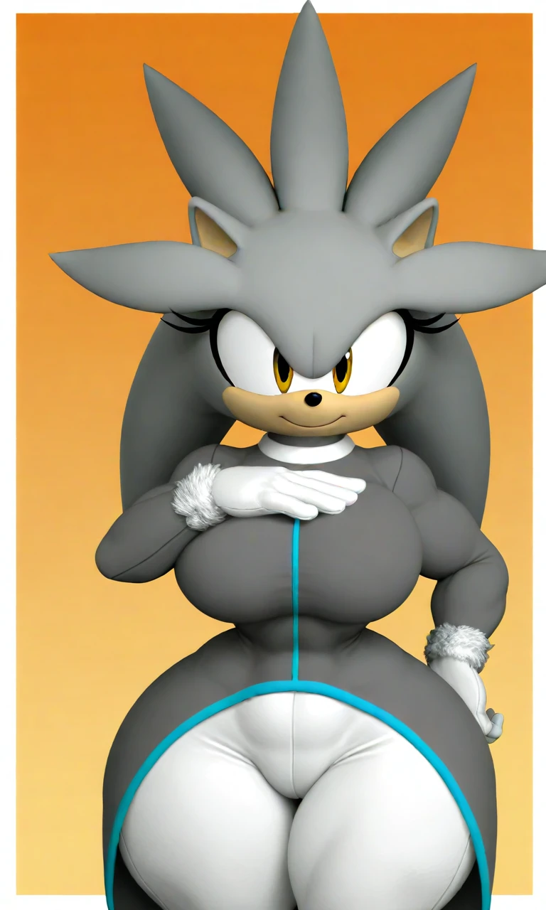 km_Fsilver, hedgehog, silver fur, yellow eyes, white gloves, quills, grey-aqua coat vest, white pants, fur-trimmed gloves, aqua shoes,