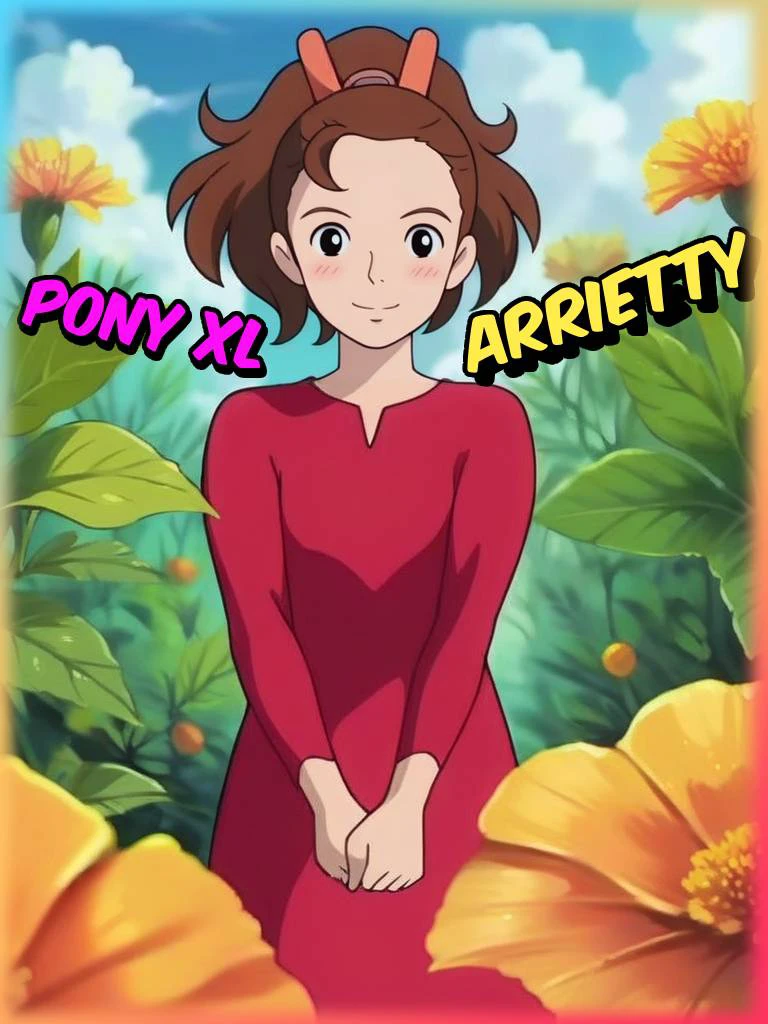 Use the activation word "ArriettyXLP" "ponytail, red dress, brown hair, long sleeves" for original Style: "anime_screencap" for better results Avoid the next prompts "Realism, Realistic, 3d" for lovely results. Hope you enjoy and have fun!
