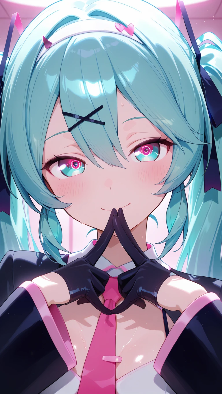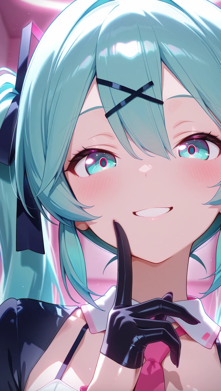 very long hair,aqua hair,twintails,hair ornament,hair between eyes,aqua eyes