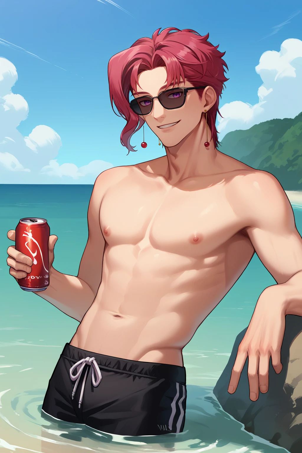 1boy, kkn, purple eyes, short hair, cherry earrings
