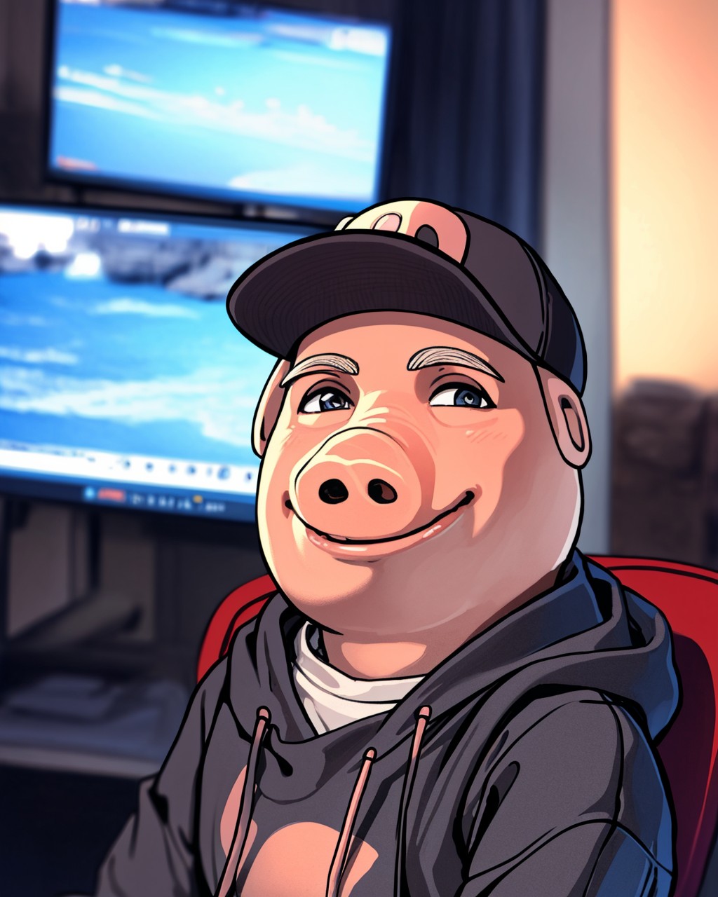 This LoRA model conjures up images of John Pork, the famous virtual influencer who died in 2023 because no one answered the call. He was funny and loved by millions. . I created this model in memory of him. #PorkItUp Rest in Reese's pieces