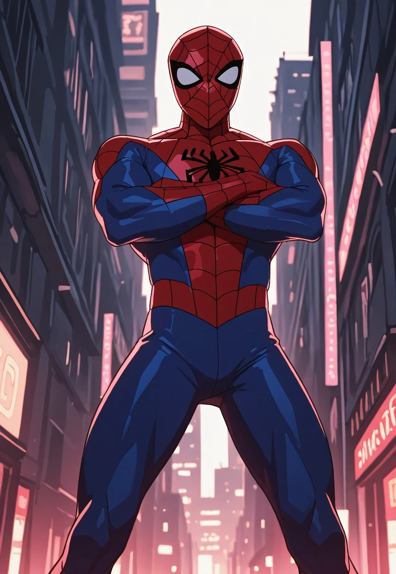 spectacularspider_(cartoon)IL, red_, blue_, , 1boy, solo, muscular, spider print, mask,