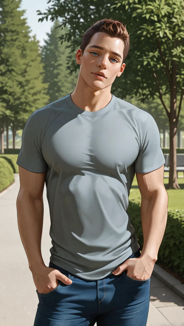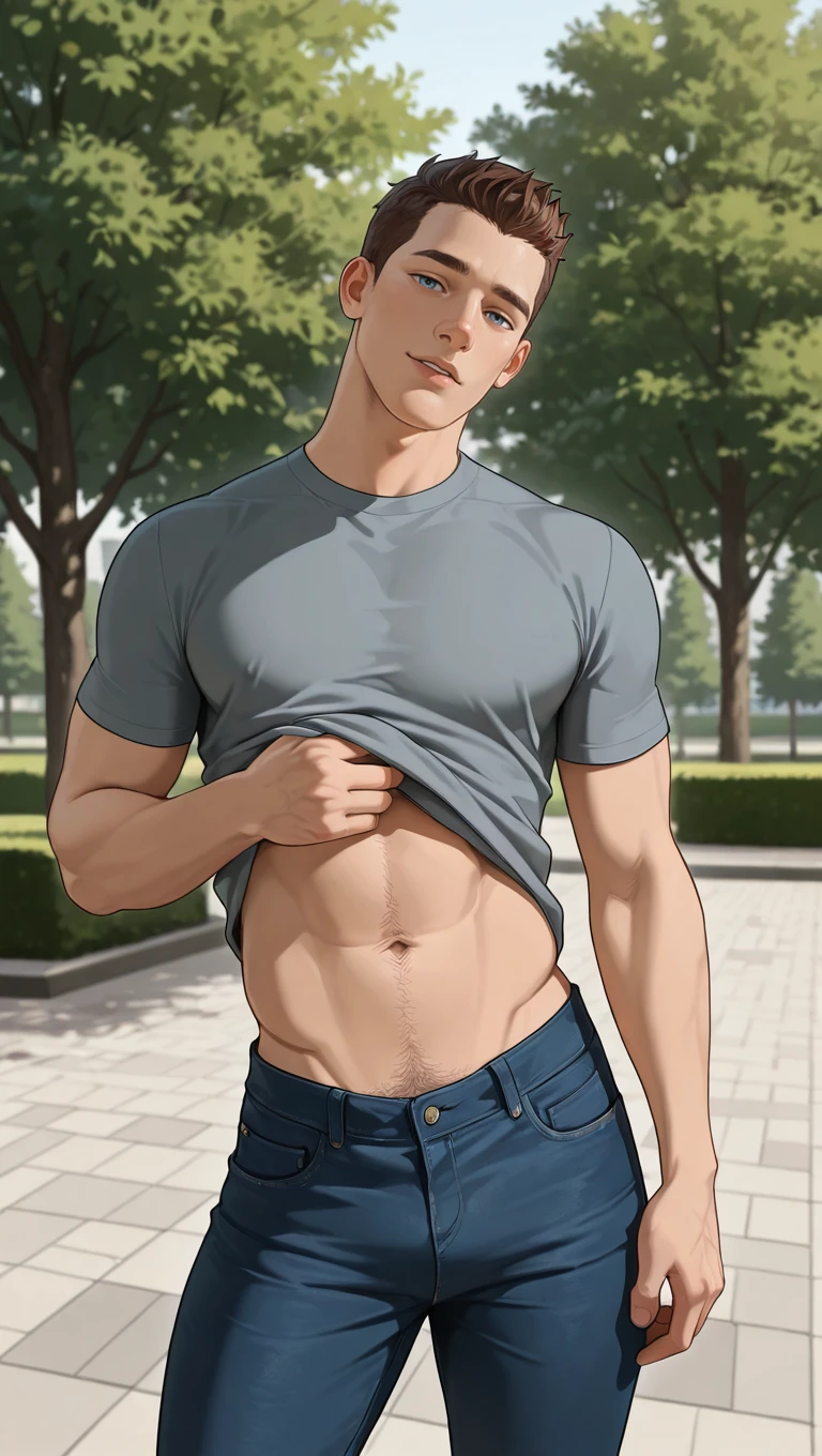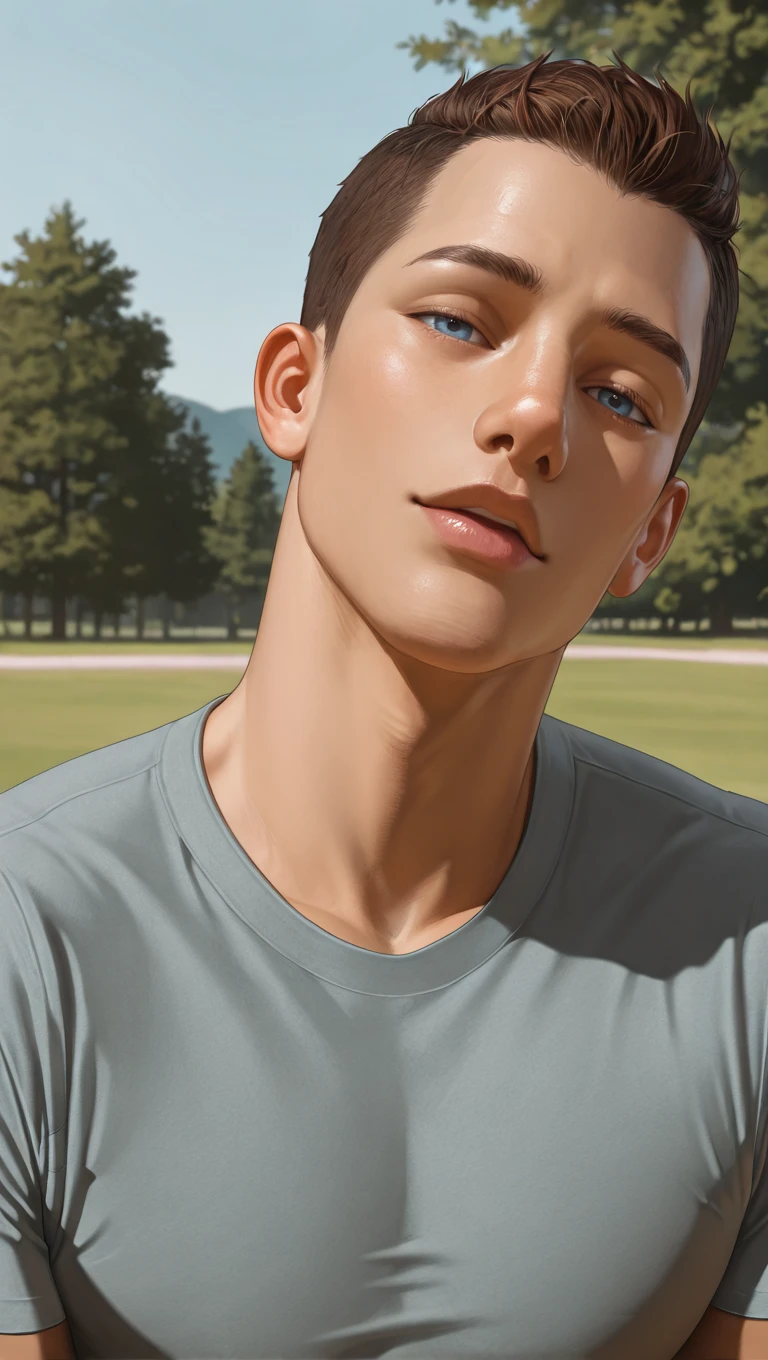 markm, 1boy, adult male, bara, brown hair, very short hair, blue eyes