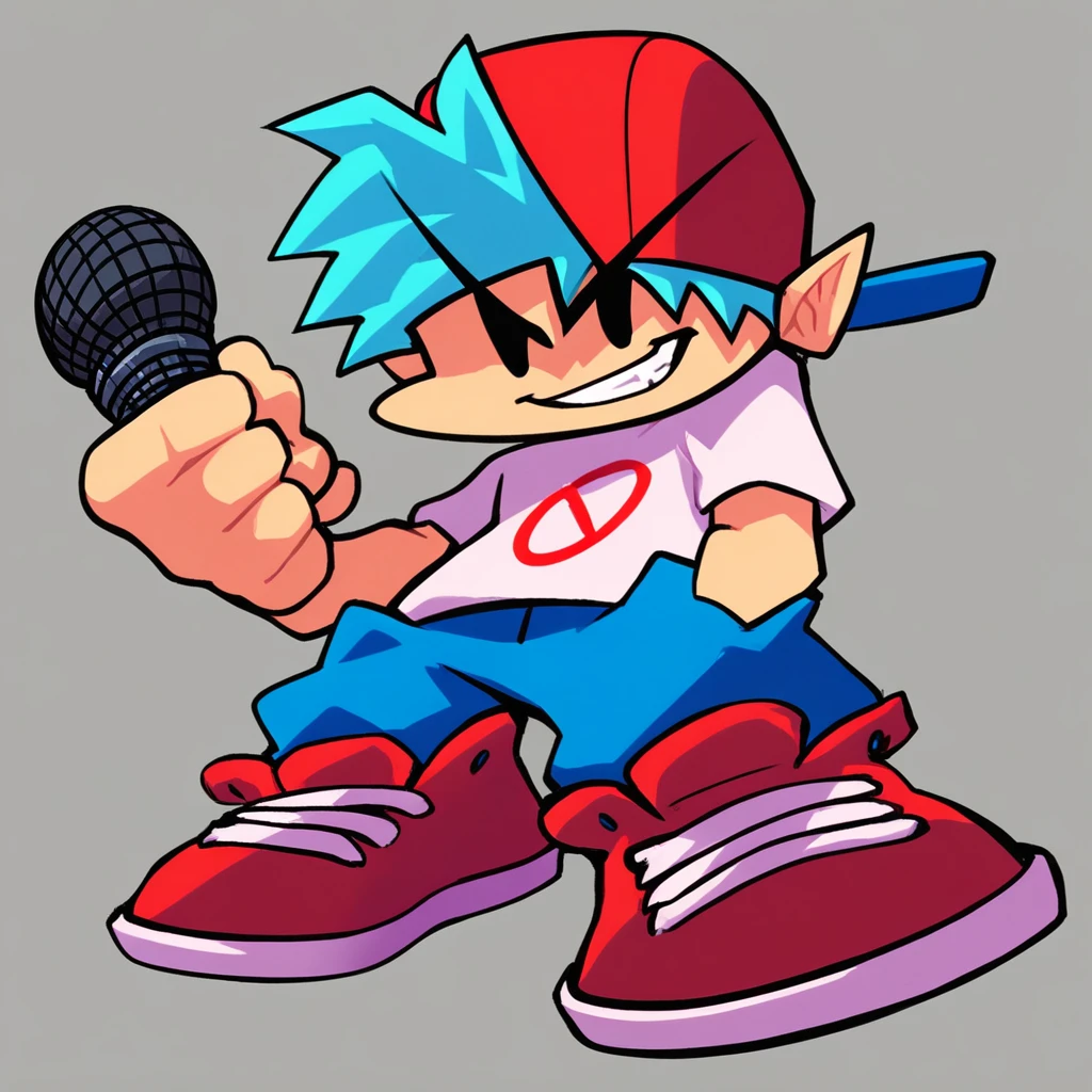 Boyfriend from the rhythm video game, Friday Night Funkin (developed by The Funkin' Crew Inc.)
