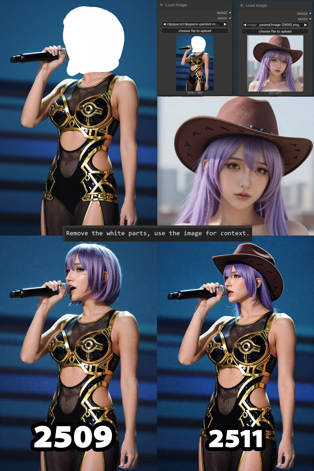 For Uncropping/Outpainting: The intended purpose is to take a cropped image, expand the canvas size higher than the actual image and fill it with white. Use that as Image 1.