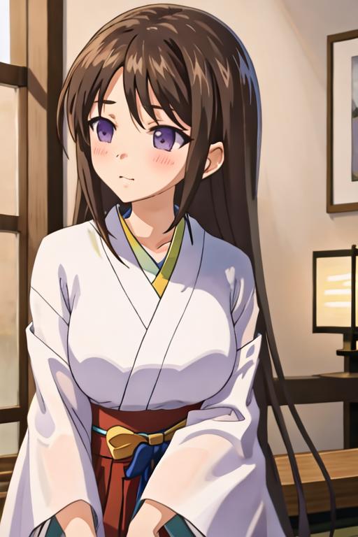 brown_hair, blush, long_hair, purple_eyes, breasts, large_breasts