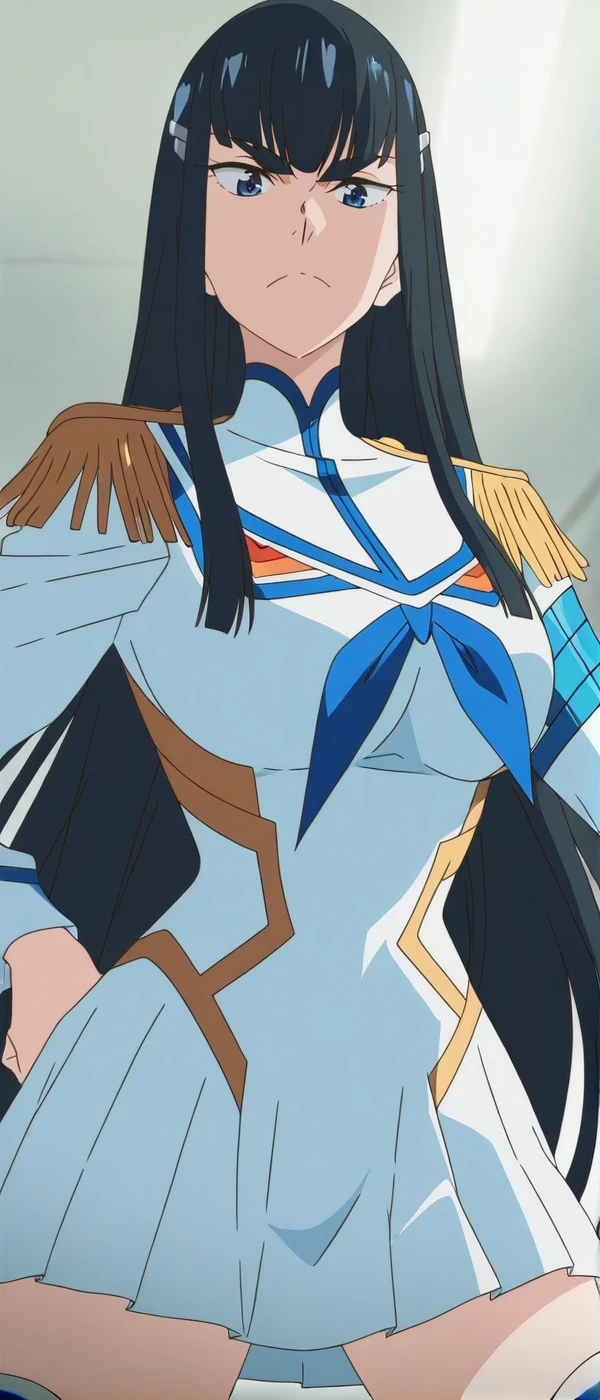 long sleeves, hair ornament, school uniform, hairclip, white dress, white thighhighs, short dress, epaulettes, high collar, high heel boots, anime coloring