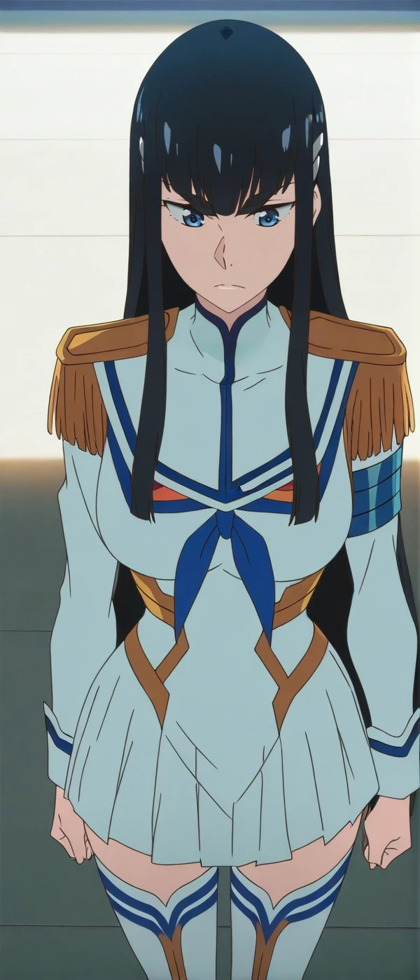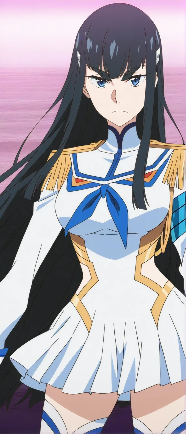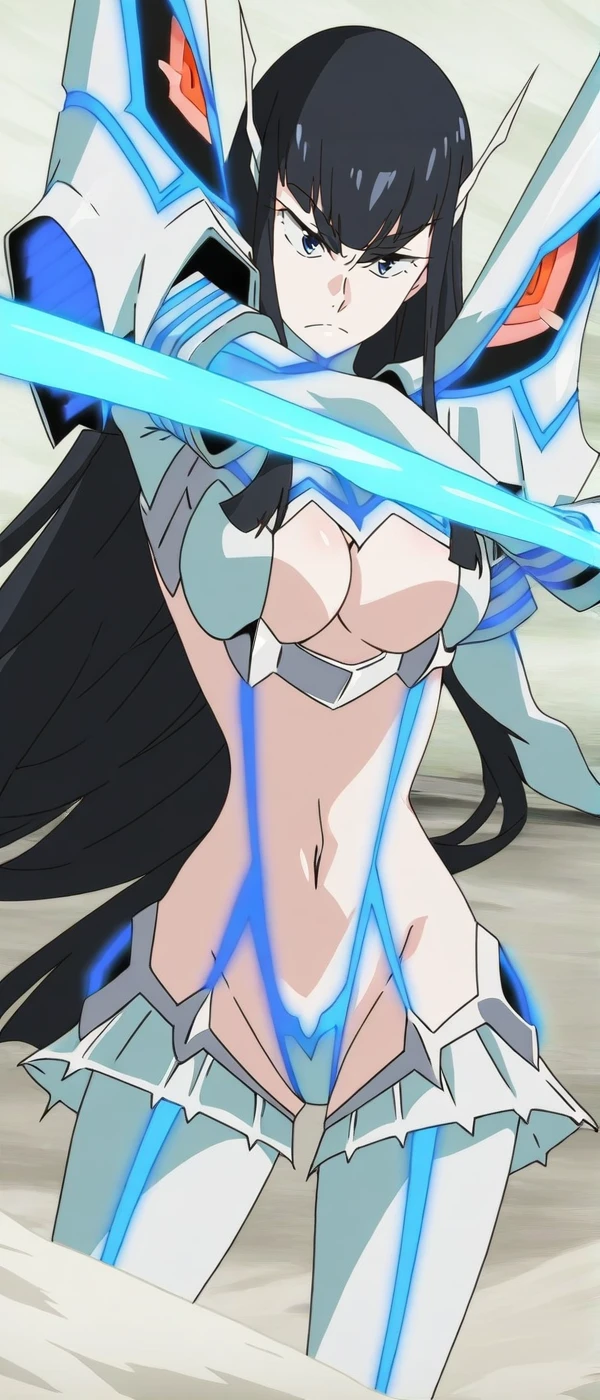 gloves, white thighhighs, armor, thigh boots, headgear, garter straps, cleavage cutout, suspenders, shoulder armor, revealing clothes, high heel boots, junketsu big wing-shaped crests eyes, anime coloring