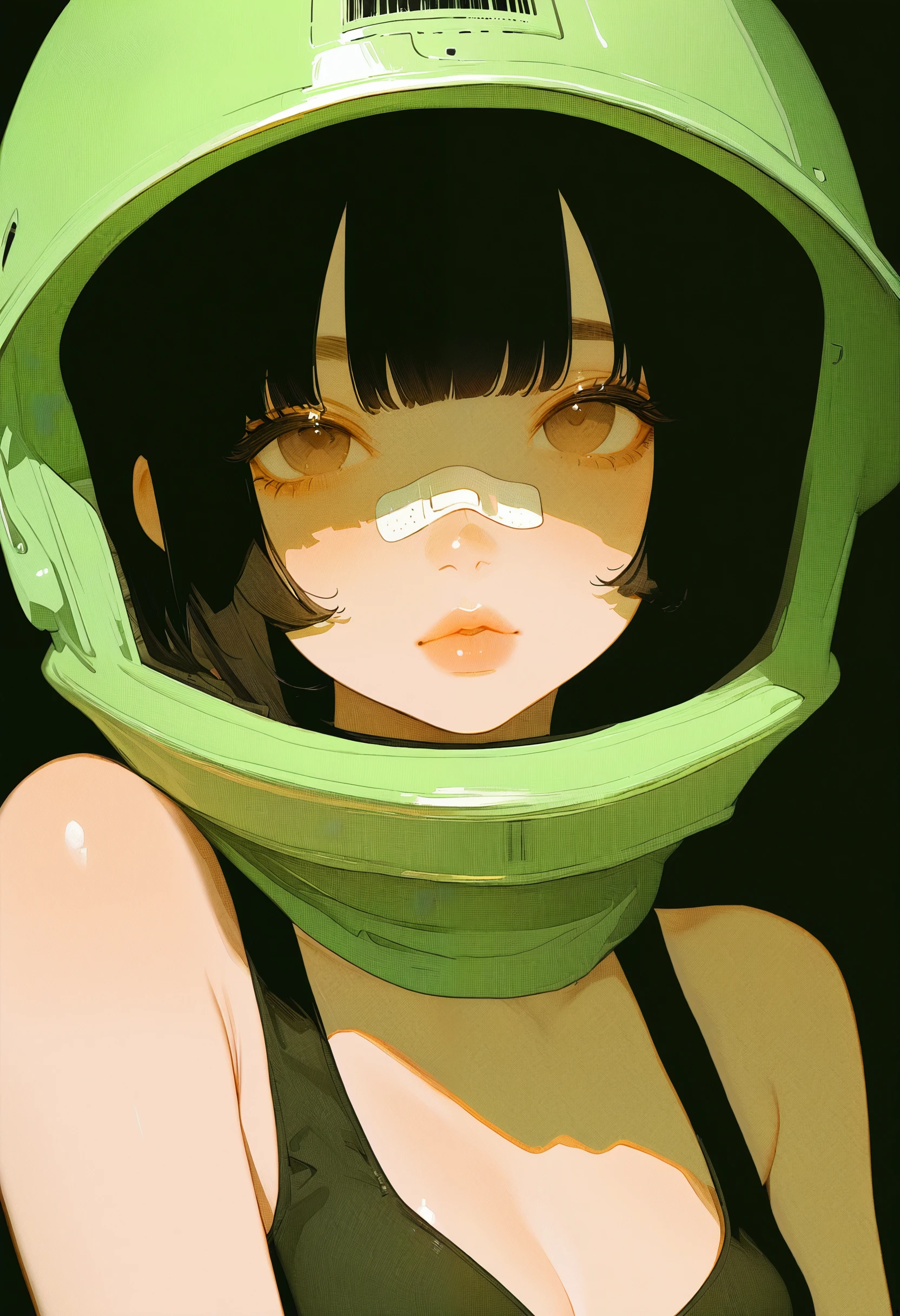 1girl, solo, eye focus, traditional media, painting \(medium\), traditional media, colorful, limited palette, anime screencap, no lineart, ambient occlusion, depth of field, fingernails, nail polishNegative: