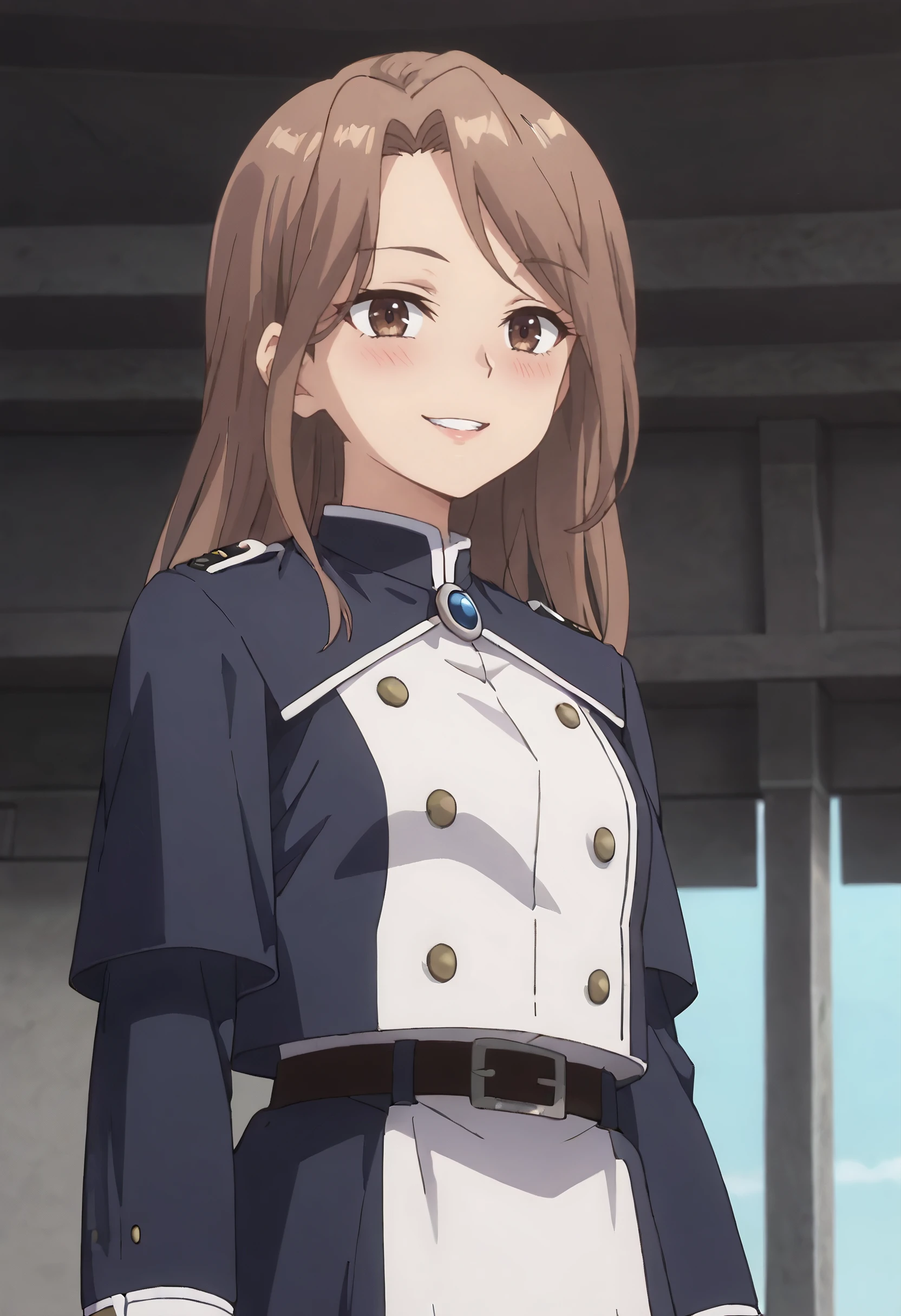 buttons, long sleeves, double-breasted, uniform, jacket, military, military uniform, belt, belt buckle,