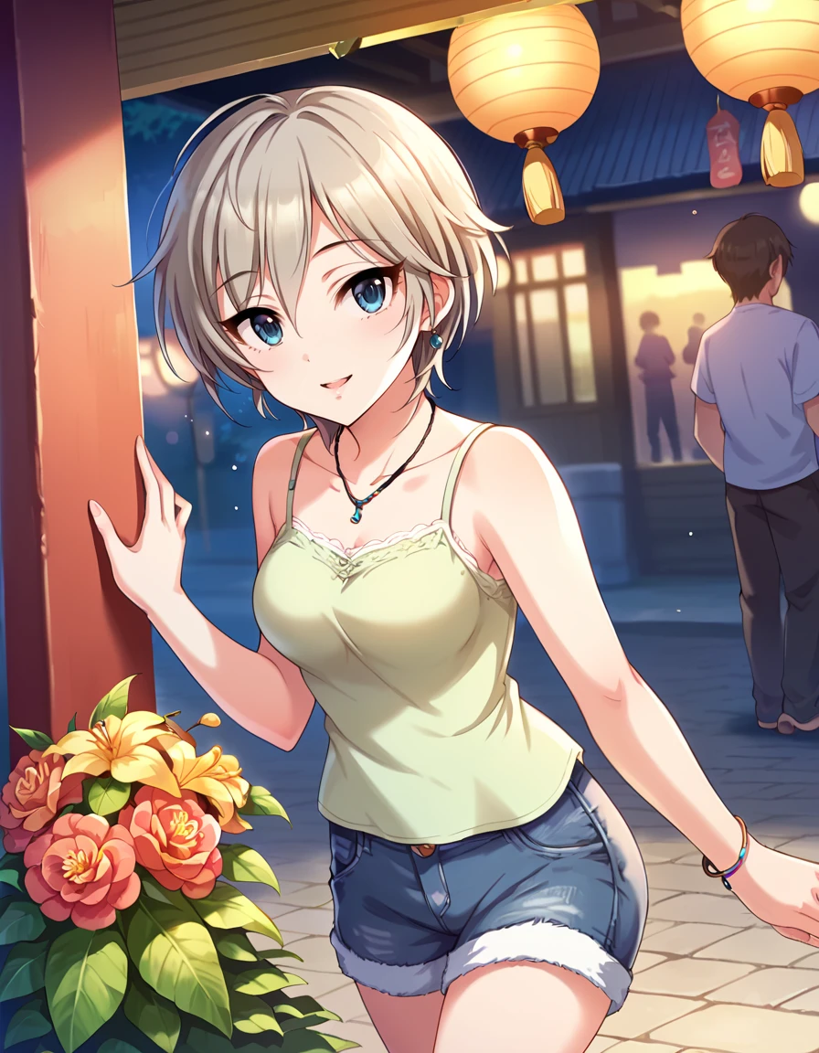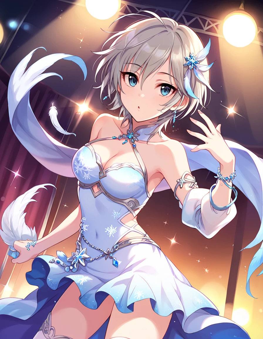 anstsa, short hair, grey hair, bangs, hair between eyes, blue eyes, medium breasts,