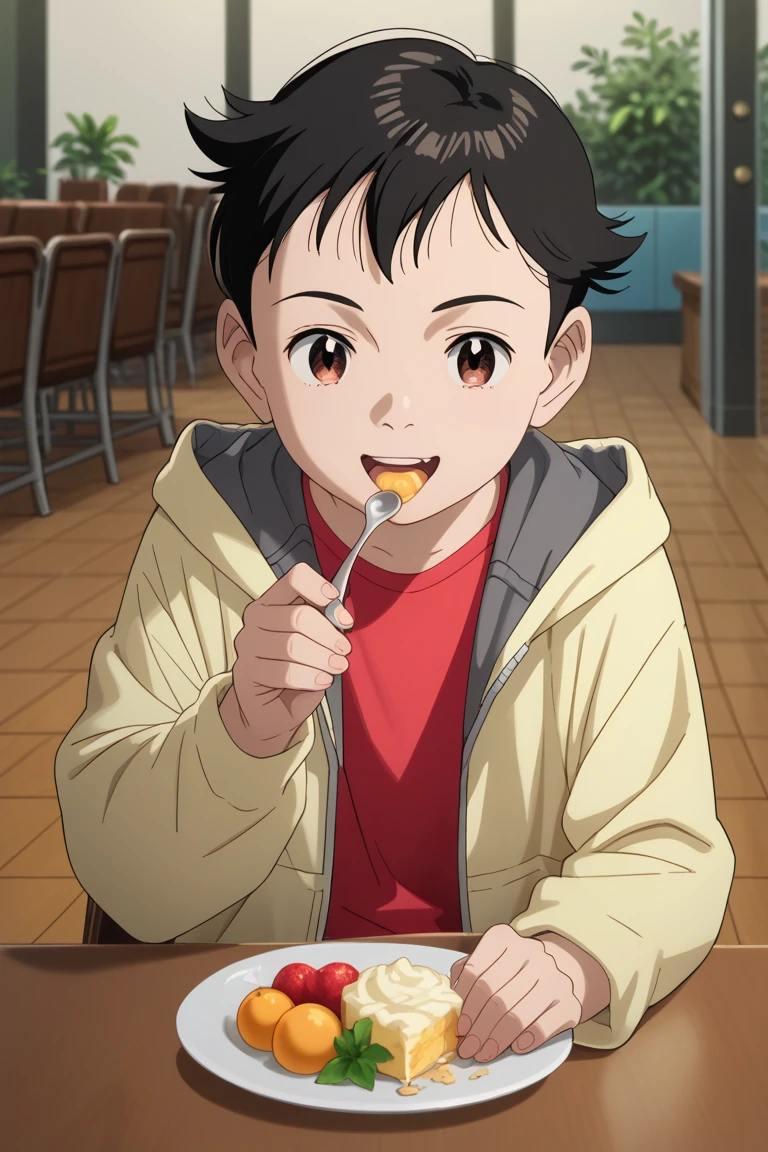 atom, black hair, brown eyes