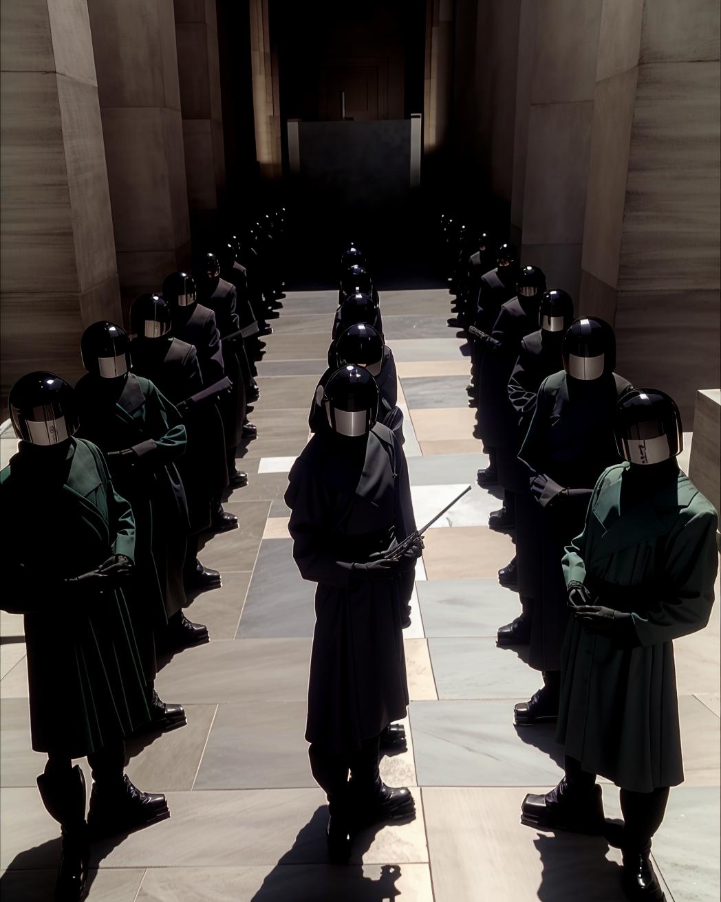 Equilibrium Style Model, trained for 10 epochs and 8590 steps, encapsulates the captivating aesthetics of the movie Equilibrium. Inspired by the film's visual style, the model is adept at generating images that embody the dystopian atmosphere, stark contrasts, and minimalist color palette characteristic of Equilibrium.