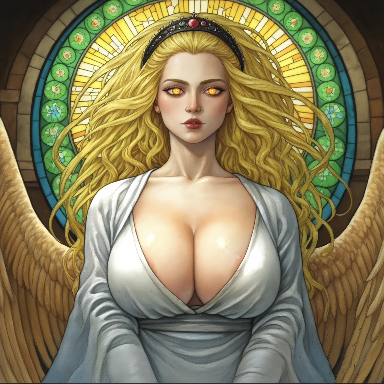 stained glass, detailed background, ornate border,