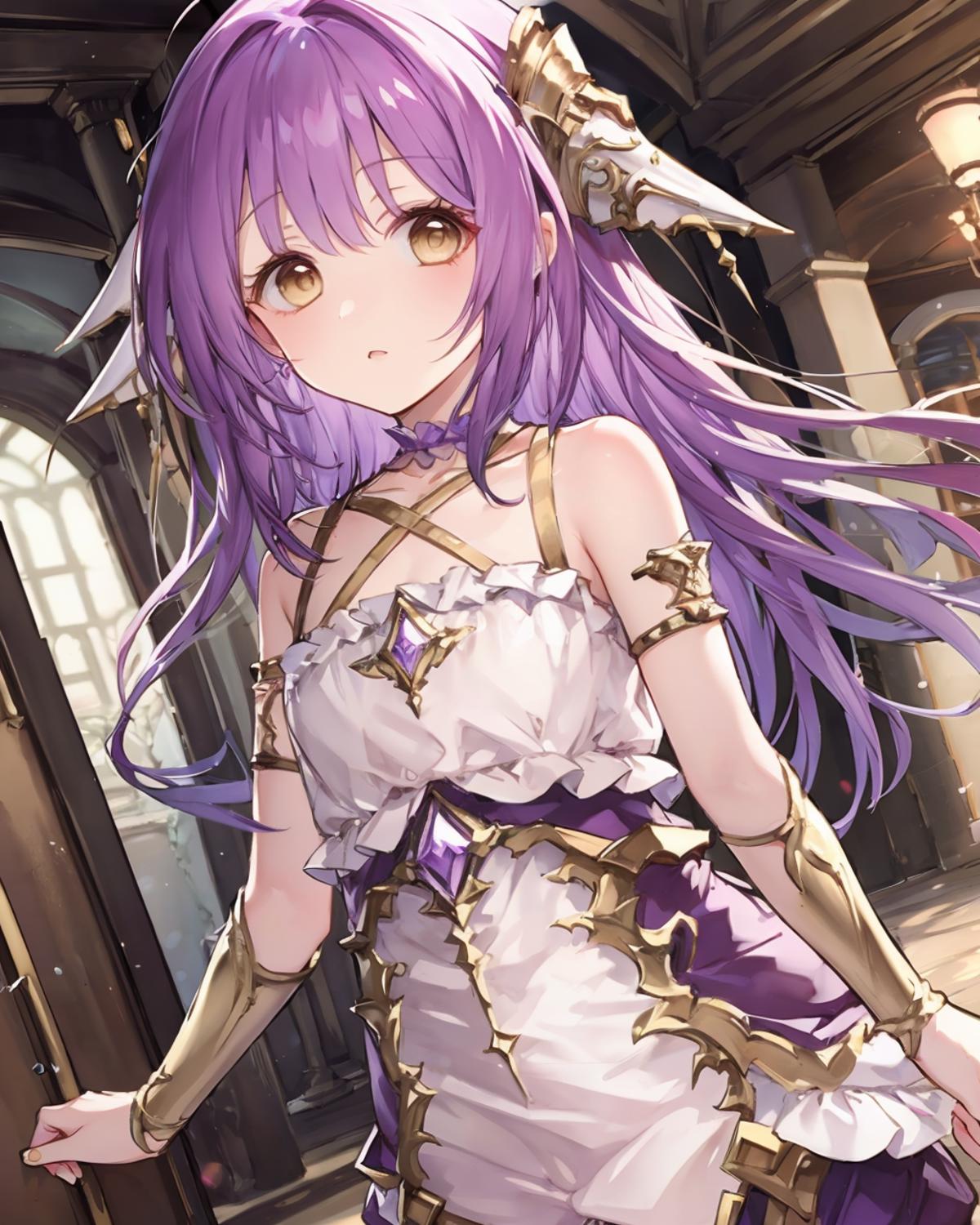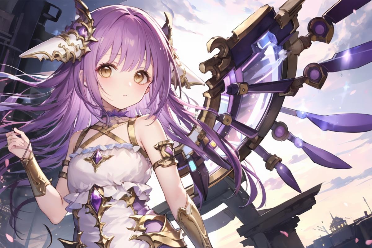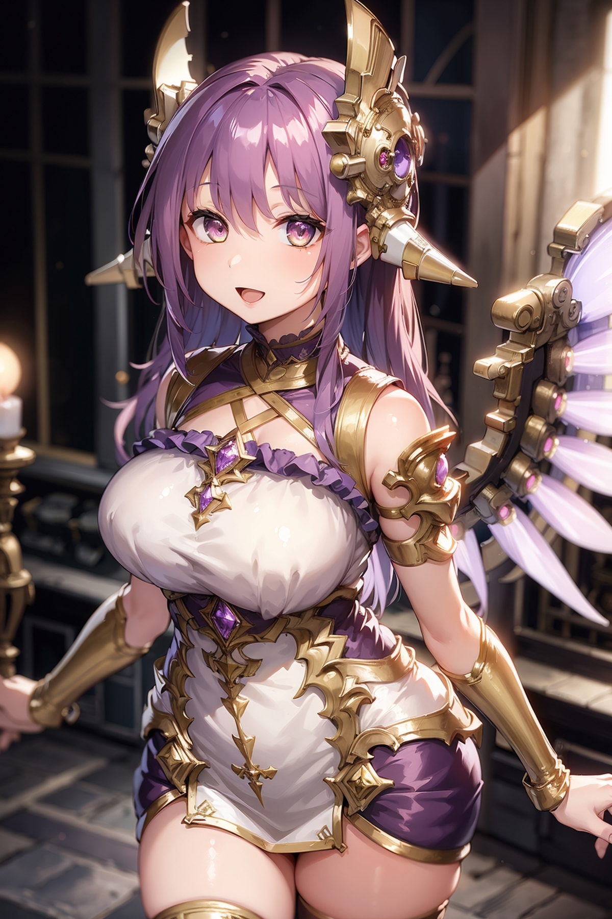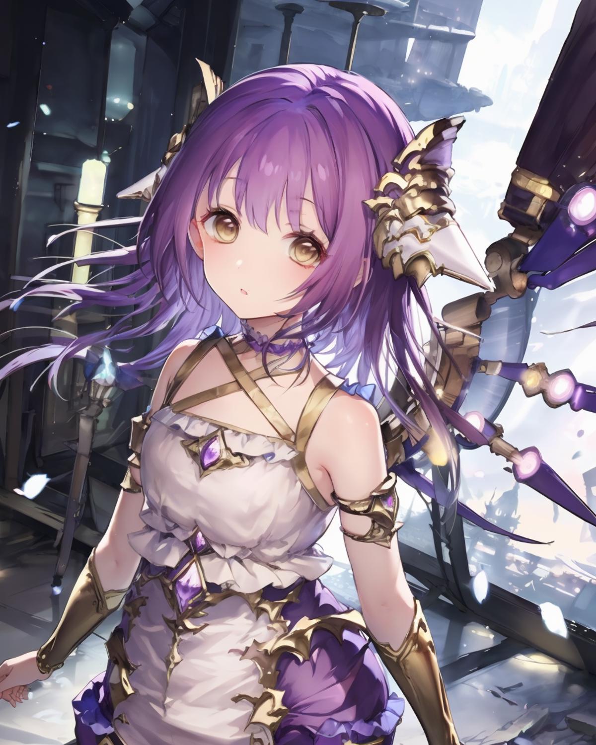 petite, ahoge, flat chest, long hair, armlet, bare shoulders, wings, mechanical wings
