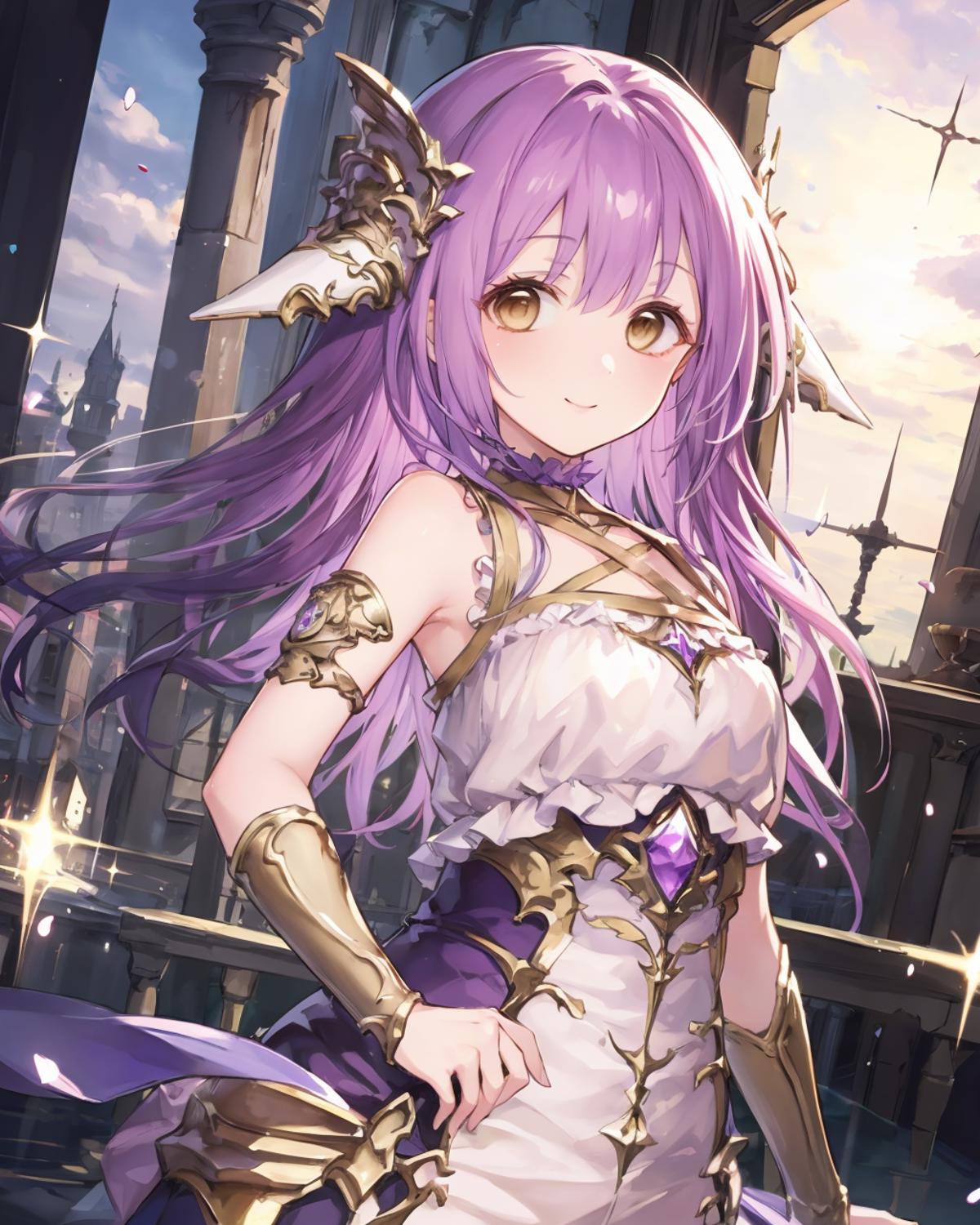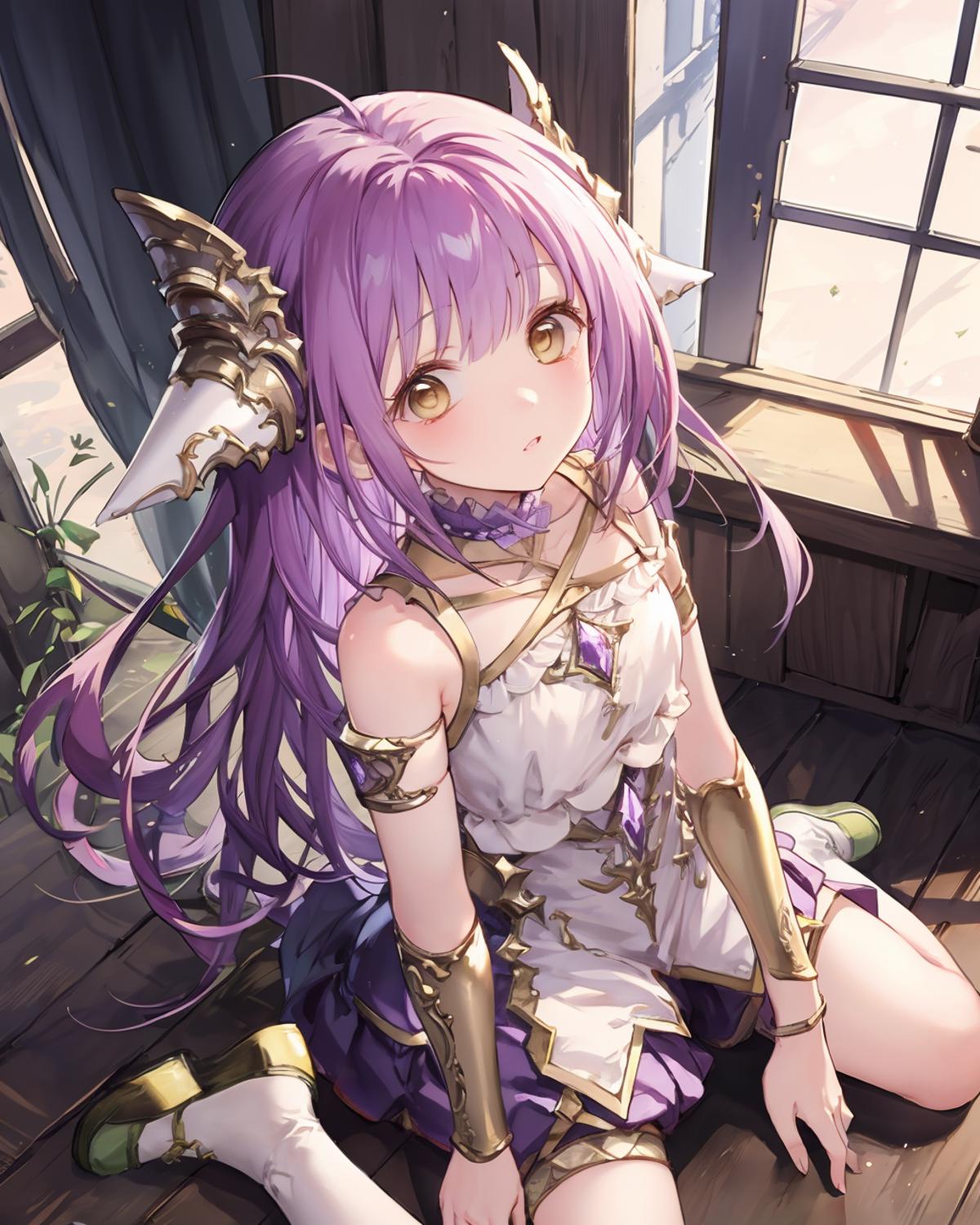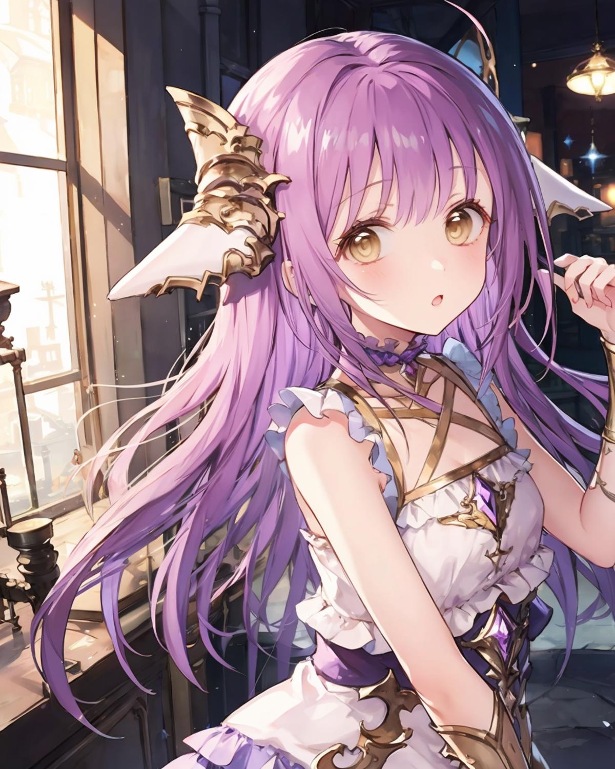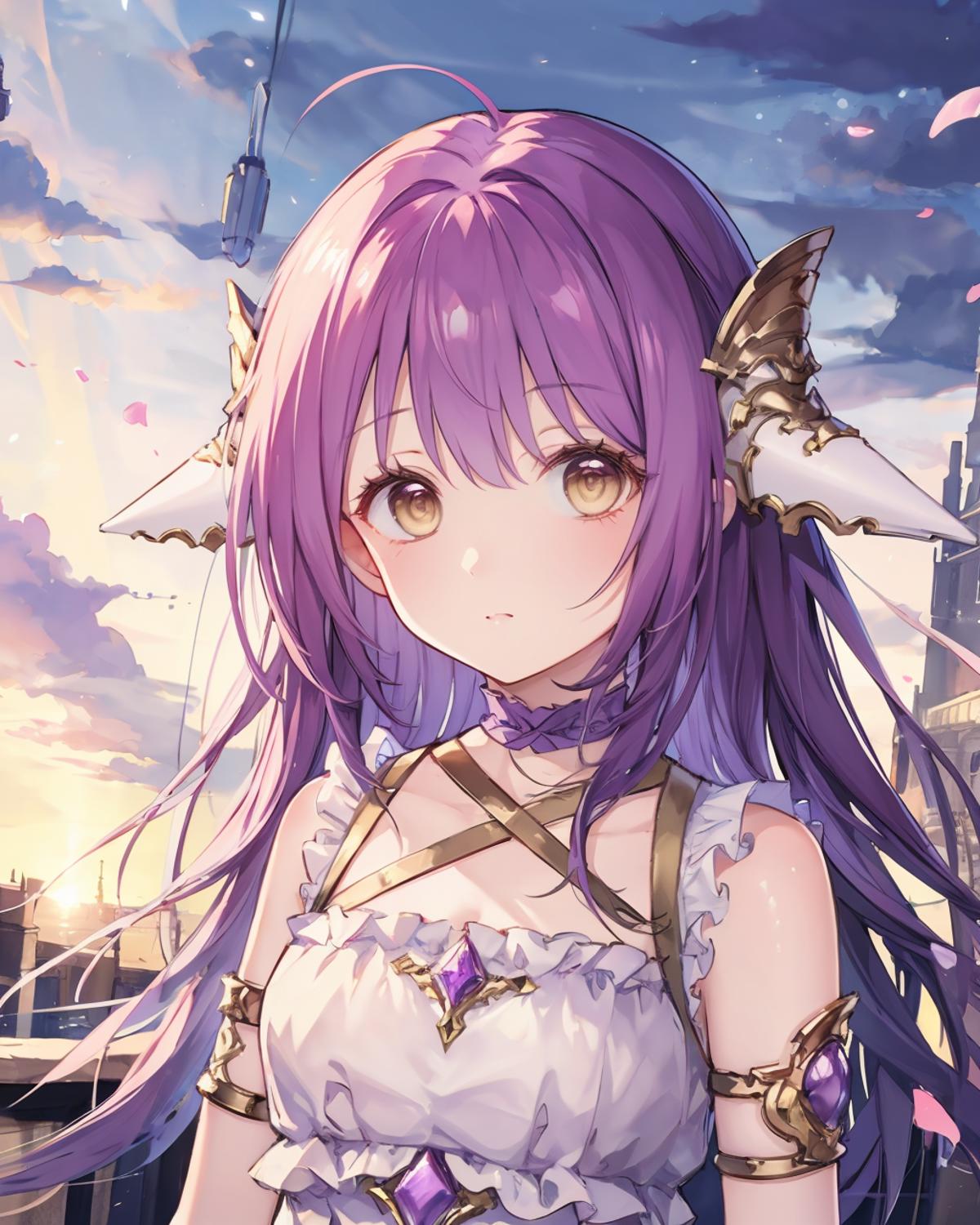 petite, ahoge, flat chest, long hair, armlet, bare shoulders, wings, mechanical wings
