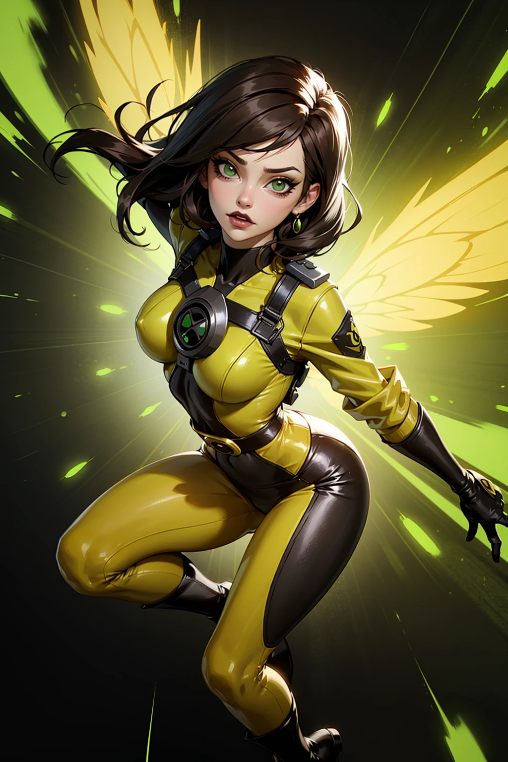 suggested keywordsflightsuit, goggles, chest harness, gloves, insect wings, green, yellow, orange