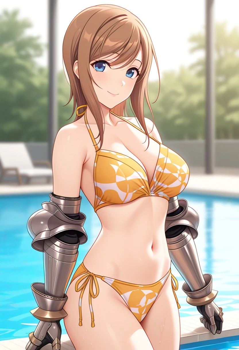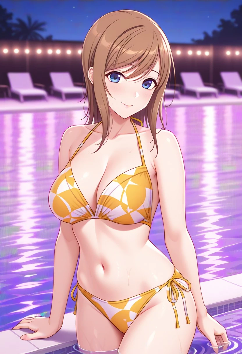 swimsuit, halterneck , yellow , print , side-tie bottom,
