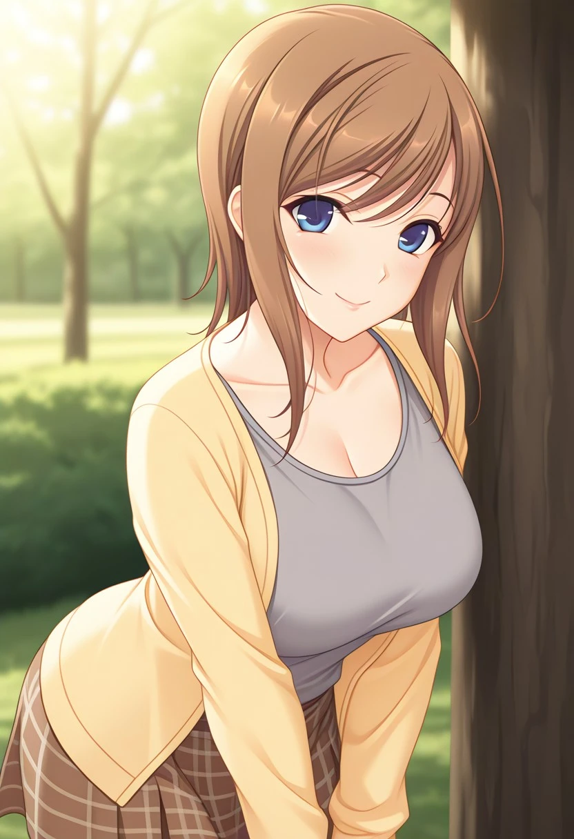 Reina Avery, 1girl, brown hair, short hair, sidelocks, hair between eyes, blue eyes,