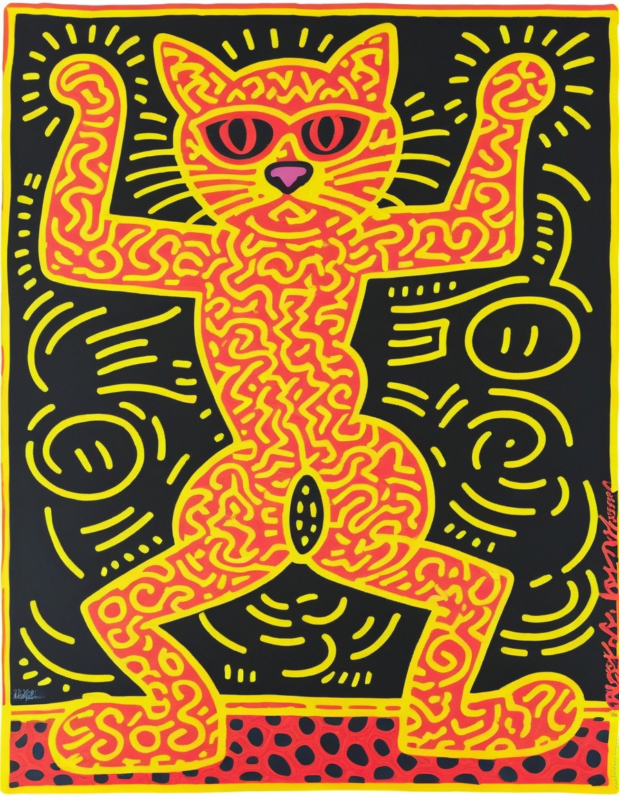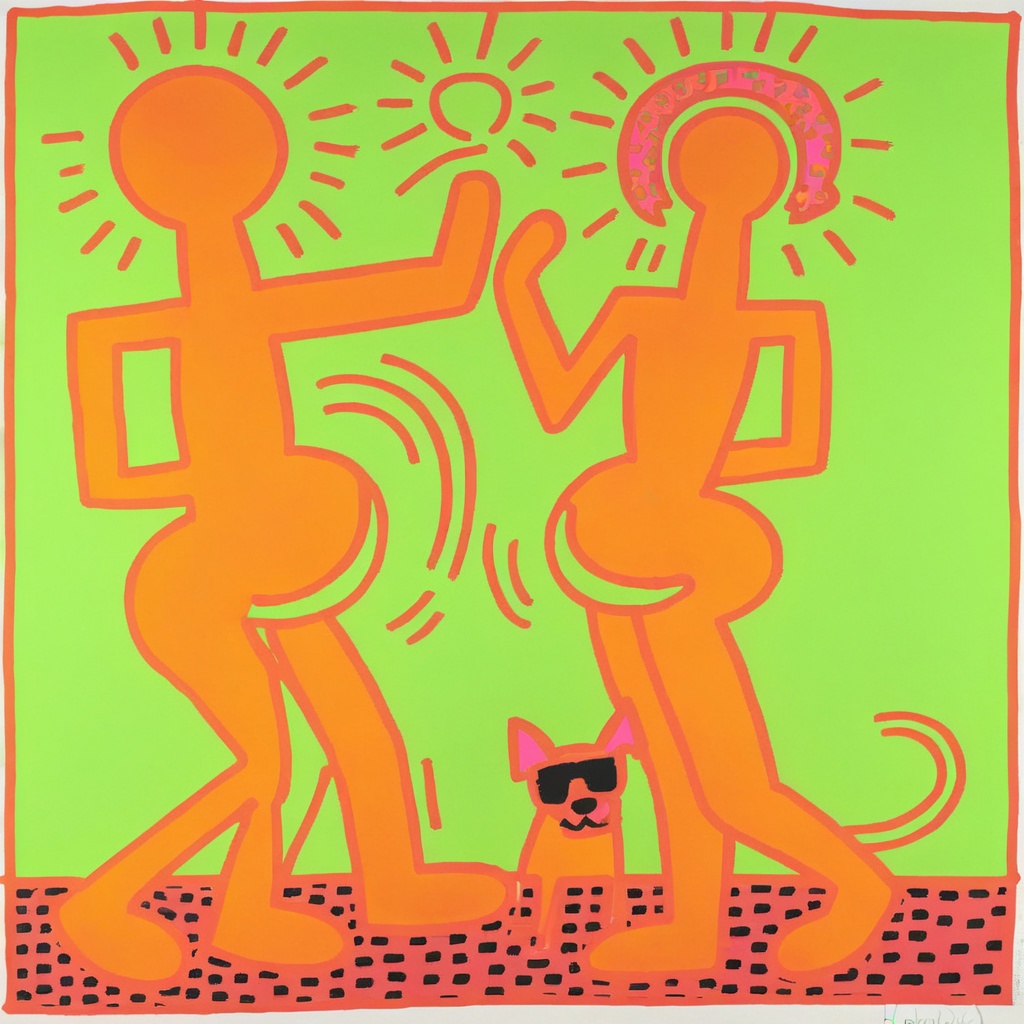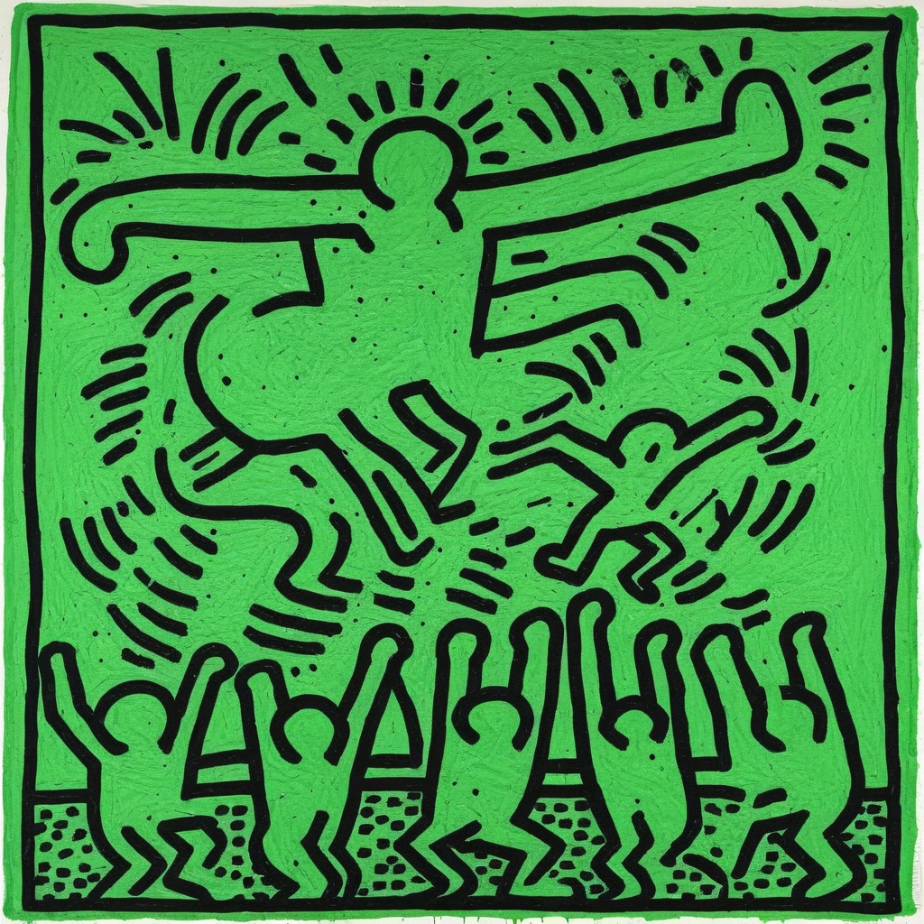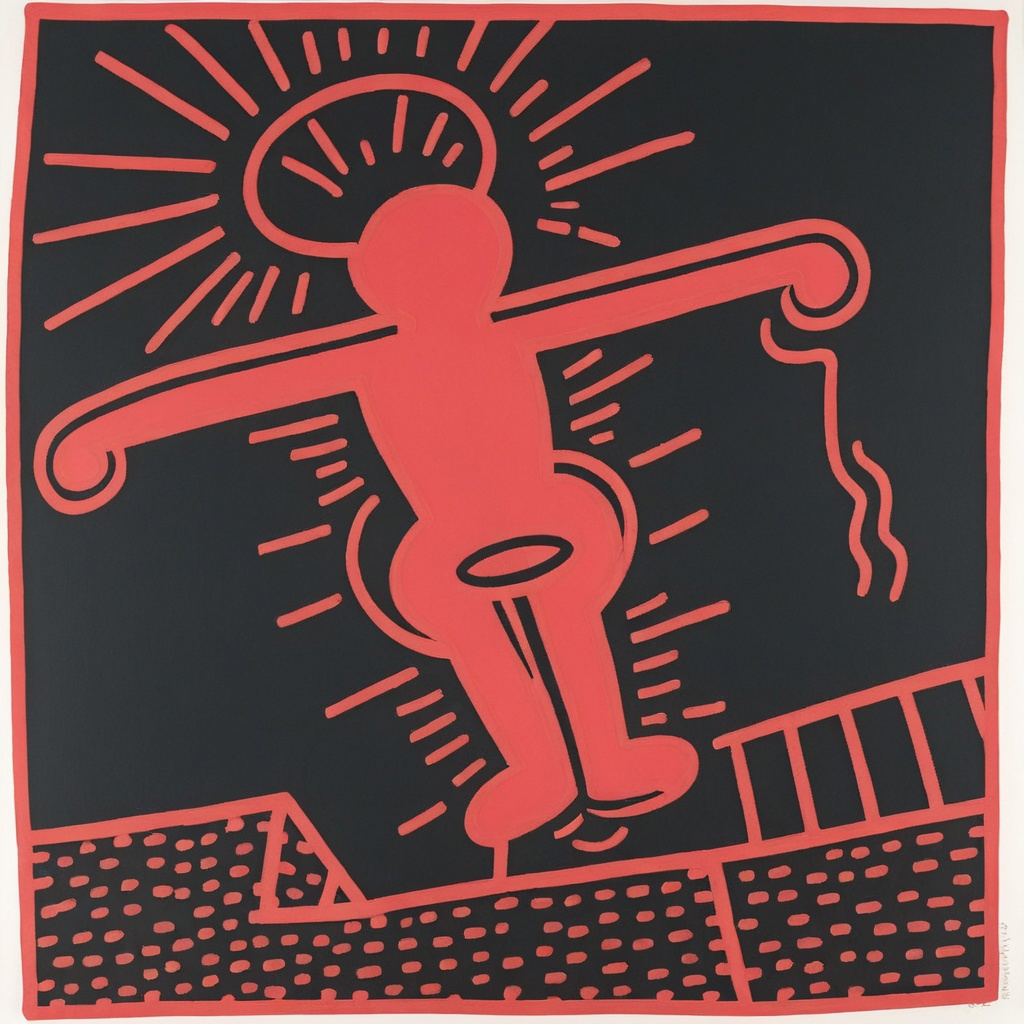 🎨 Keith Haring (1958–1990), was a prominent American artist and social activist known for his unique and instantly recognizable style of street art. Emerging in the 1980s, Haring's work was characterized by bold, black lines and vibrant, often primary colors, which he used to create whimsical and energetic figures, such as dancing people and radiant babies. He believed in the power of art to convey important social and political messages and frequently used his work to address issues like AIDS awareness, apartheid, and the fight against drug addiction. Haring's iconic pop art style, often seen in public murals, has left a lasting impact on contemporary art, and his commitment to social causes through his art continues to inspire artists and activists worldwide.