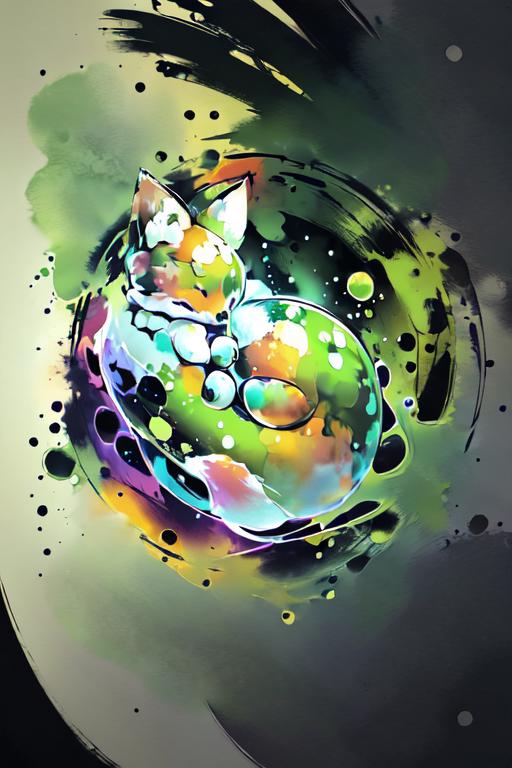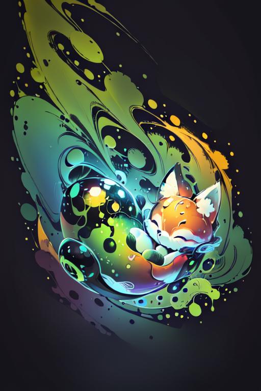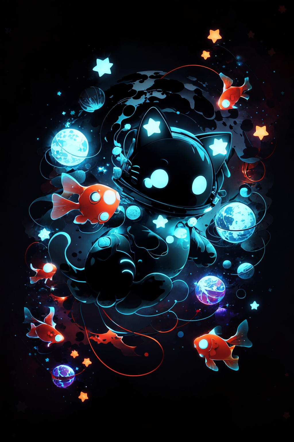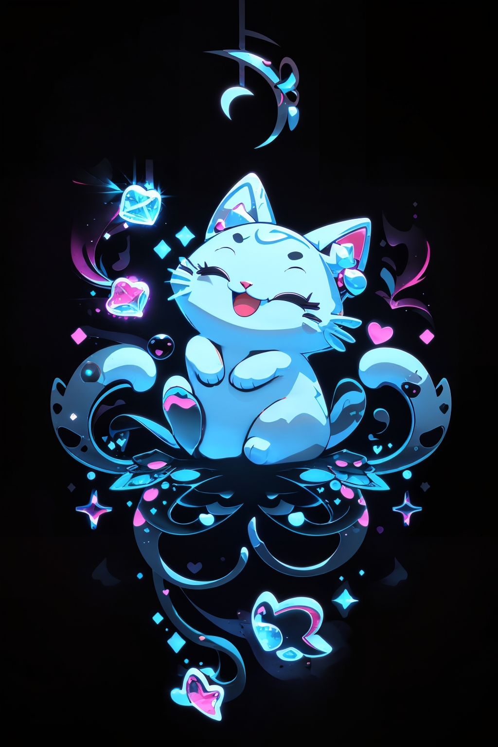 Prompt: cute00d, smile, open mouth, full body, closed eyes, heart, sparkle, cat, black background <lora:cute00d-000020:.9>