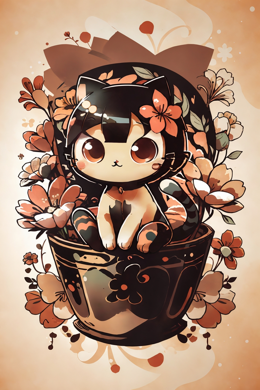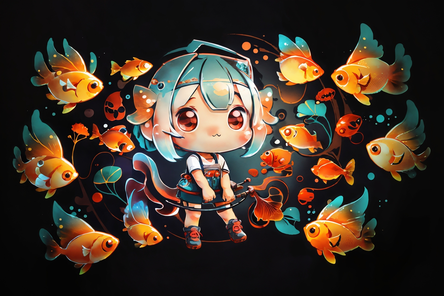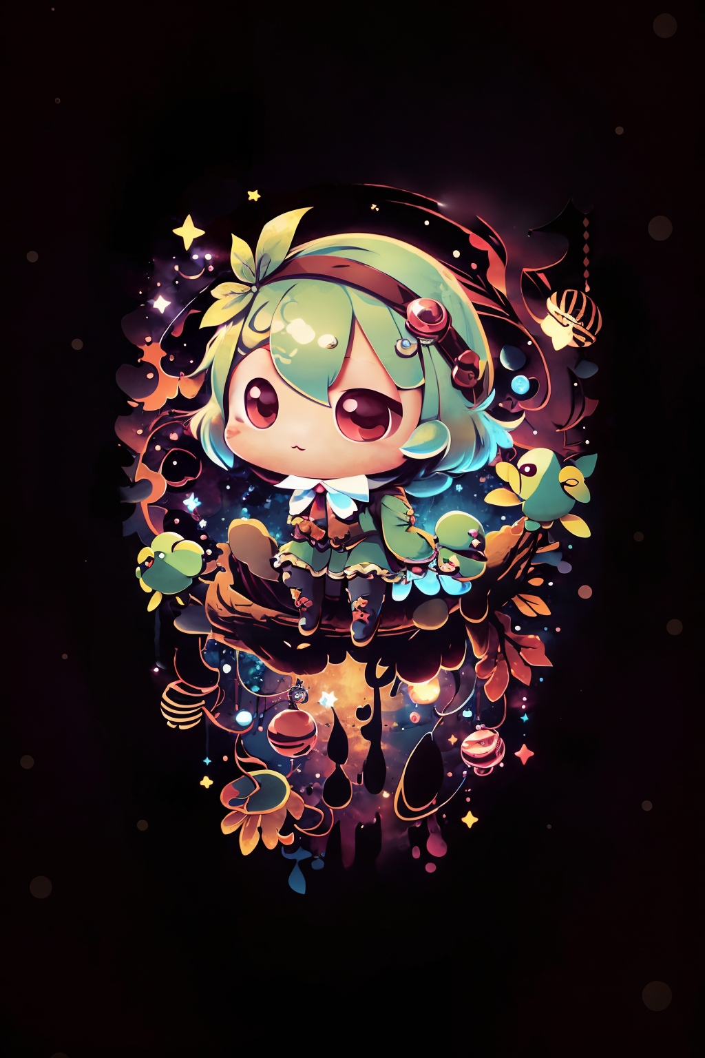Prompt: cute00d, smile, open mouth, full body, closed eyes, heart, sparkle, cat, black background <lora:cute00d-000020:.9>