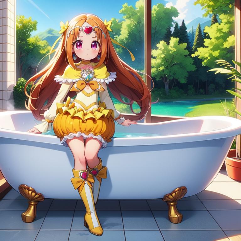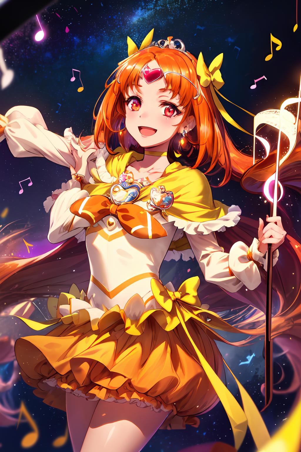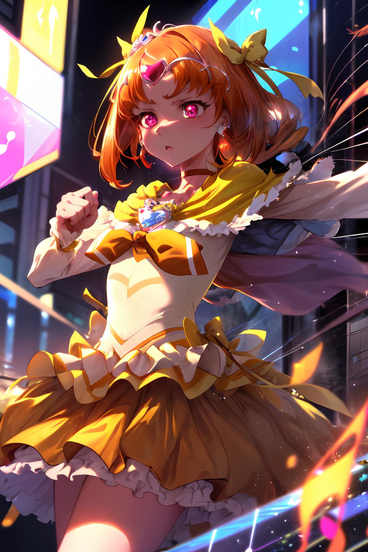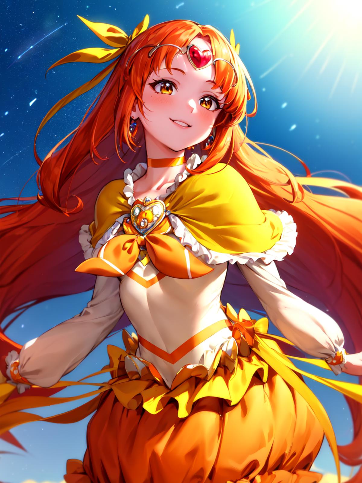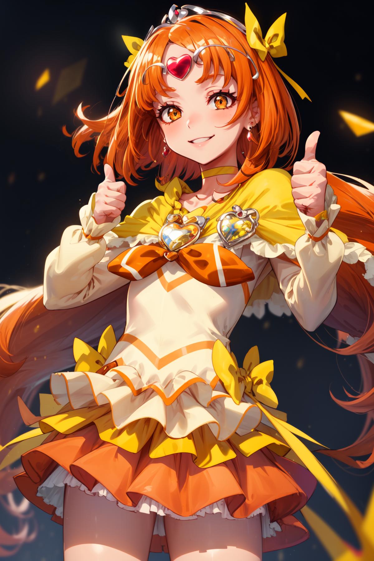 Recommend Tags: orange hair, hair ribbon, yellow choker, jewelry, brooch, capelet, tiara, boots
