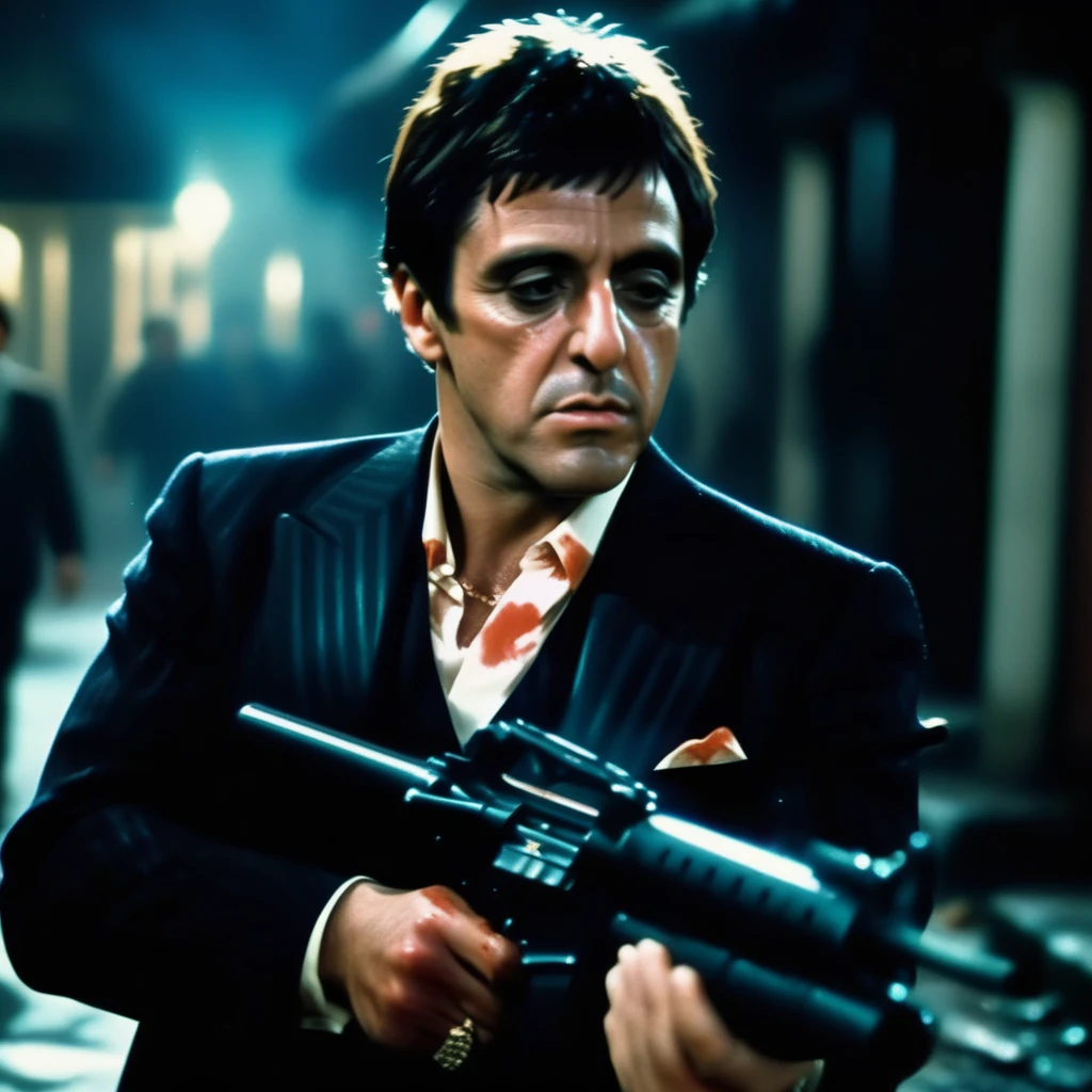 I made this one for fun, the trigger prompt "80s scarface", you can even make him hold and shoot his "little friend gun".