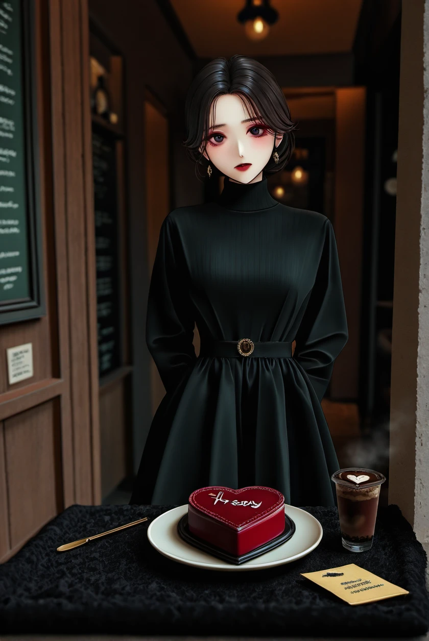 Say Happy Valentine's Day to your fave BTGG in the best possible way - red rose petals sprinkled like drops of blood over a black heart-shaped chocolate cake, laid on an altar stone draped with crushed black velvet.