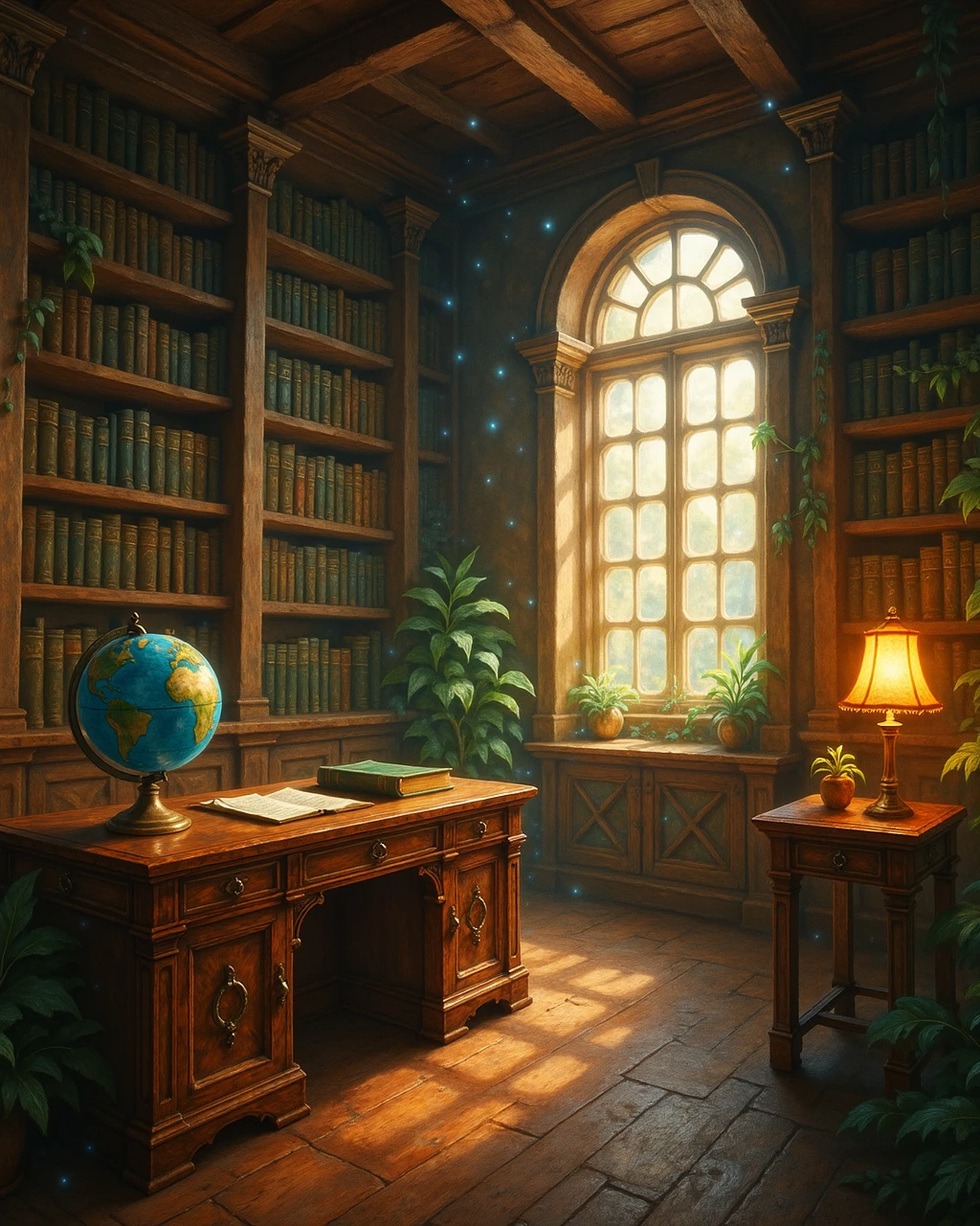 Warm painterly lighting, bioluminescent flora, floating lanterns, glowing rune accents. Works across every subject: portraits, landscapes, interiors, food, animals, architecture, urban scenes.