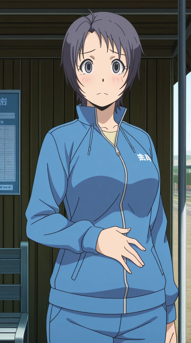 aki mikage, short hair, black hair, black eyes, antenna hair, mature female, medium breasts, anime screencap