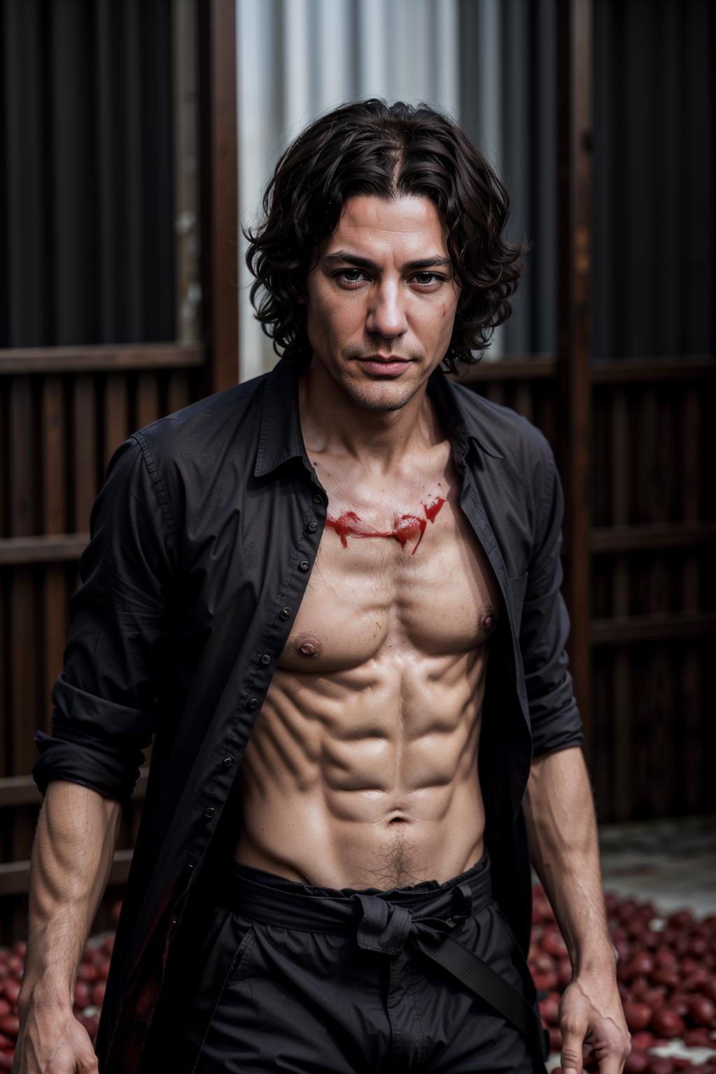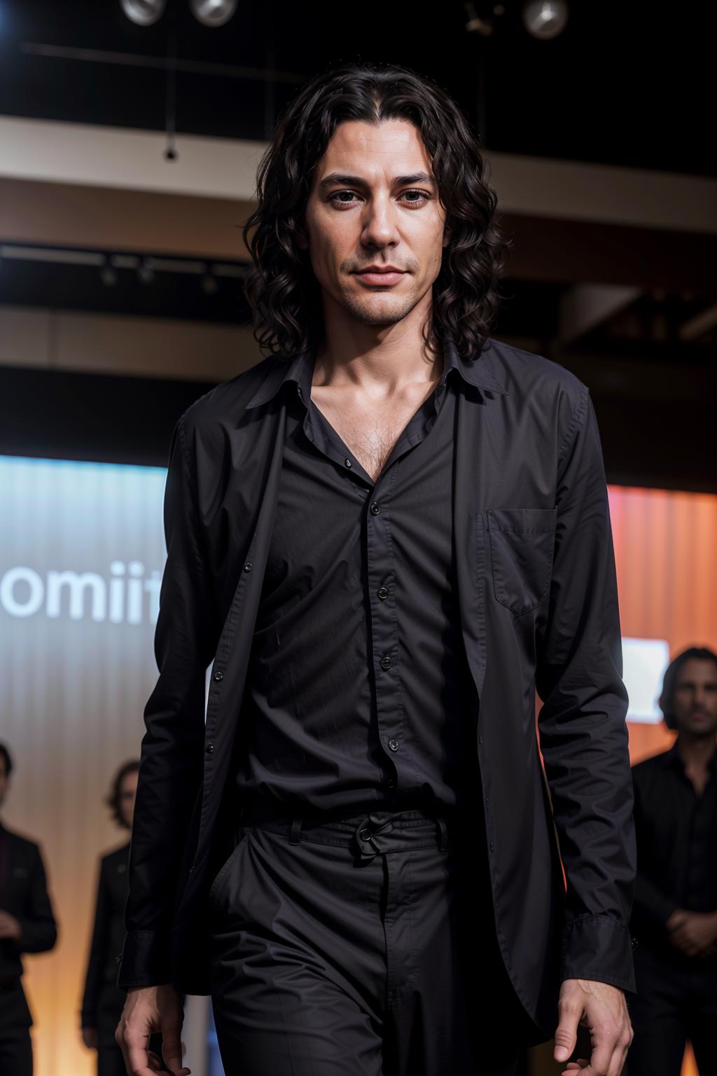 More faceapp. This one was trying to give a certain Clark Kent vibe... but he's come out much more Jim Morrison. However, I haven't done a byronic guy who looks like trouble character, so here you go. He was trained on the same body (before faceapp) of my Aiden model, which says a lot about what Faceapp does.