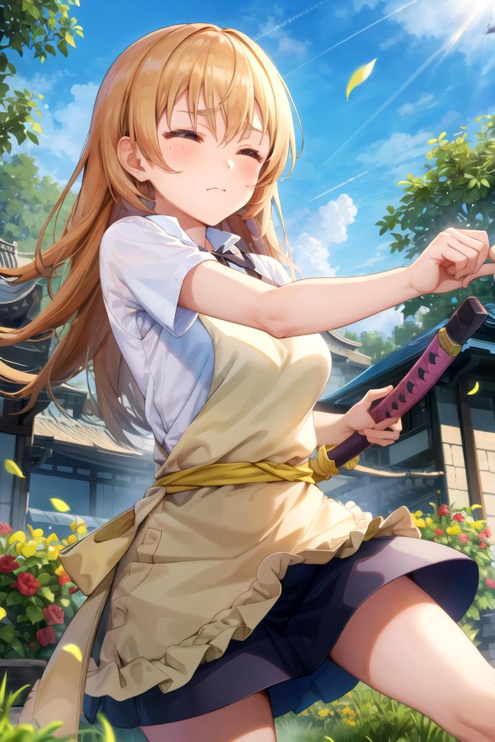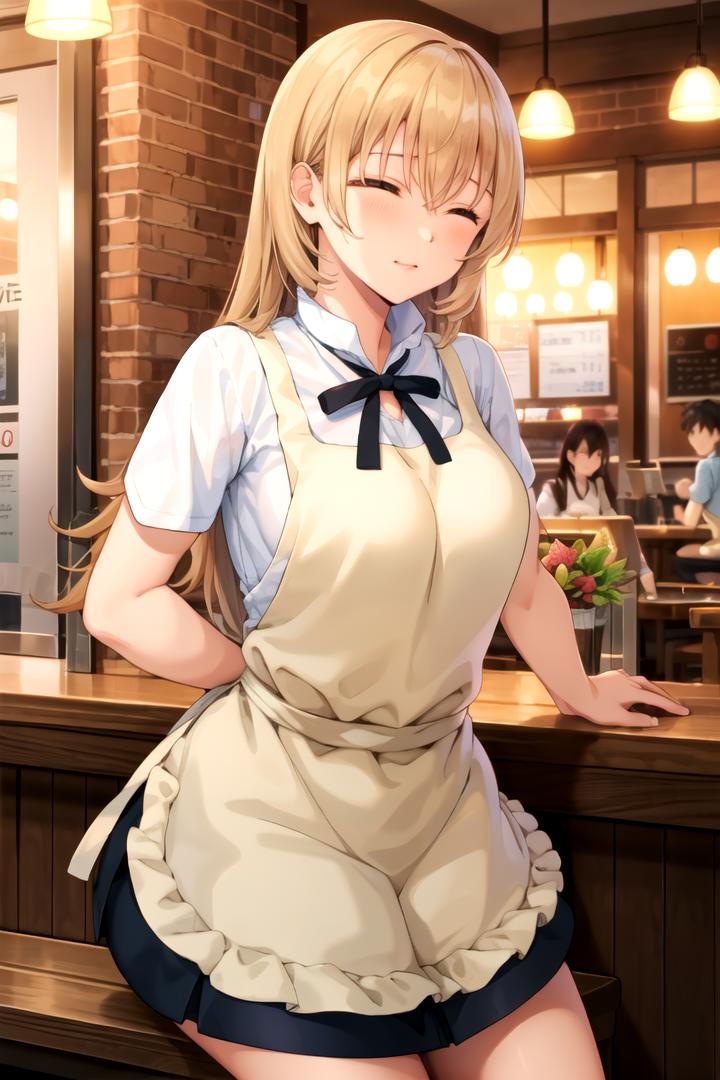 Use white shirt, ribbon, apron, skirt for her standart outfit.