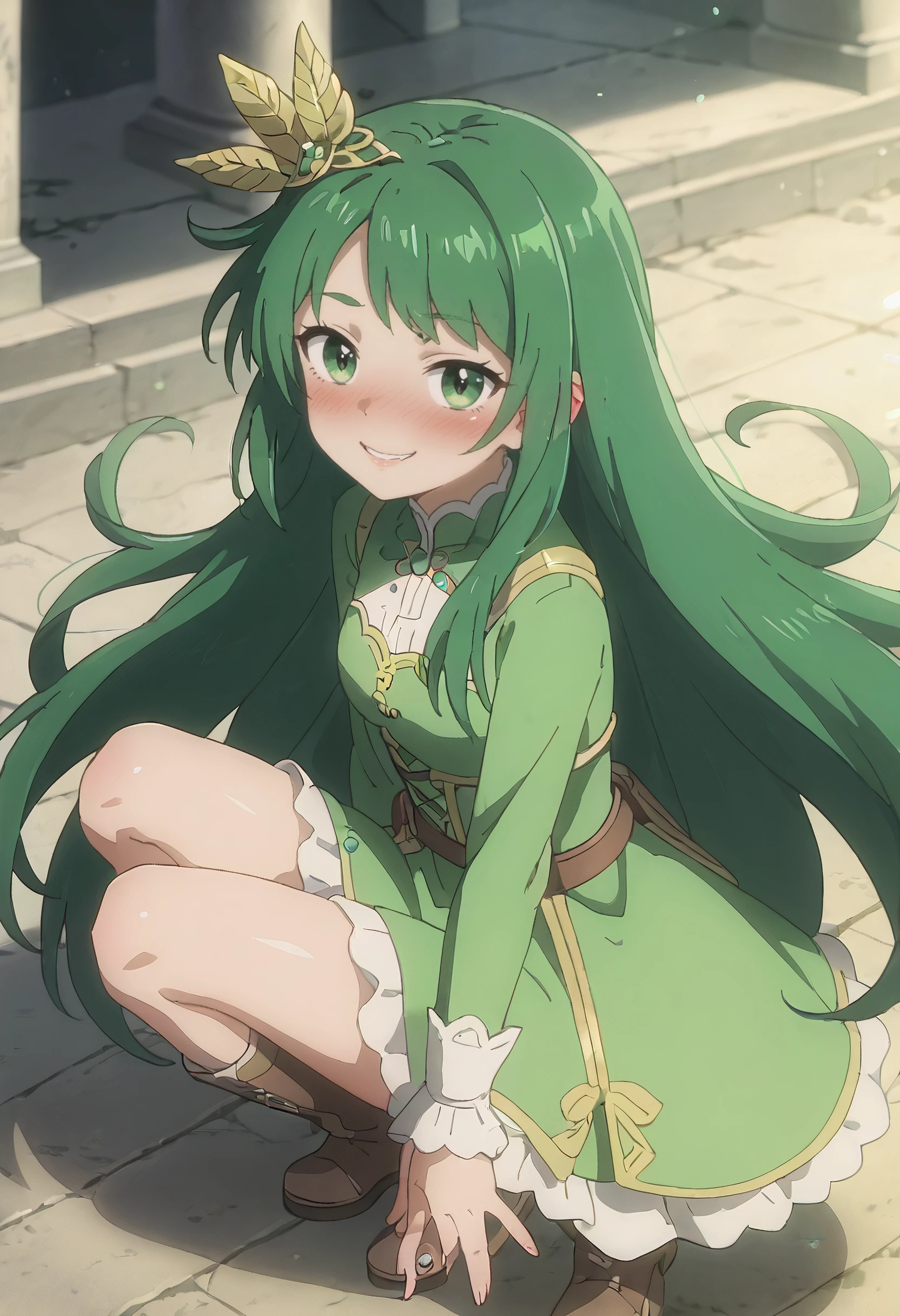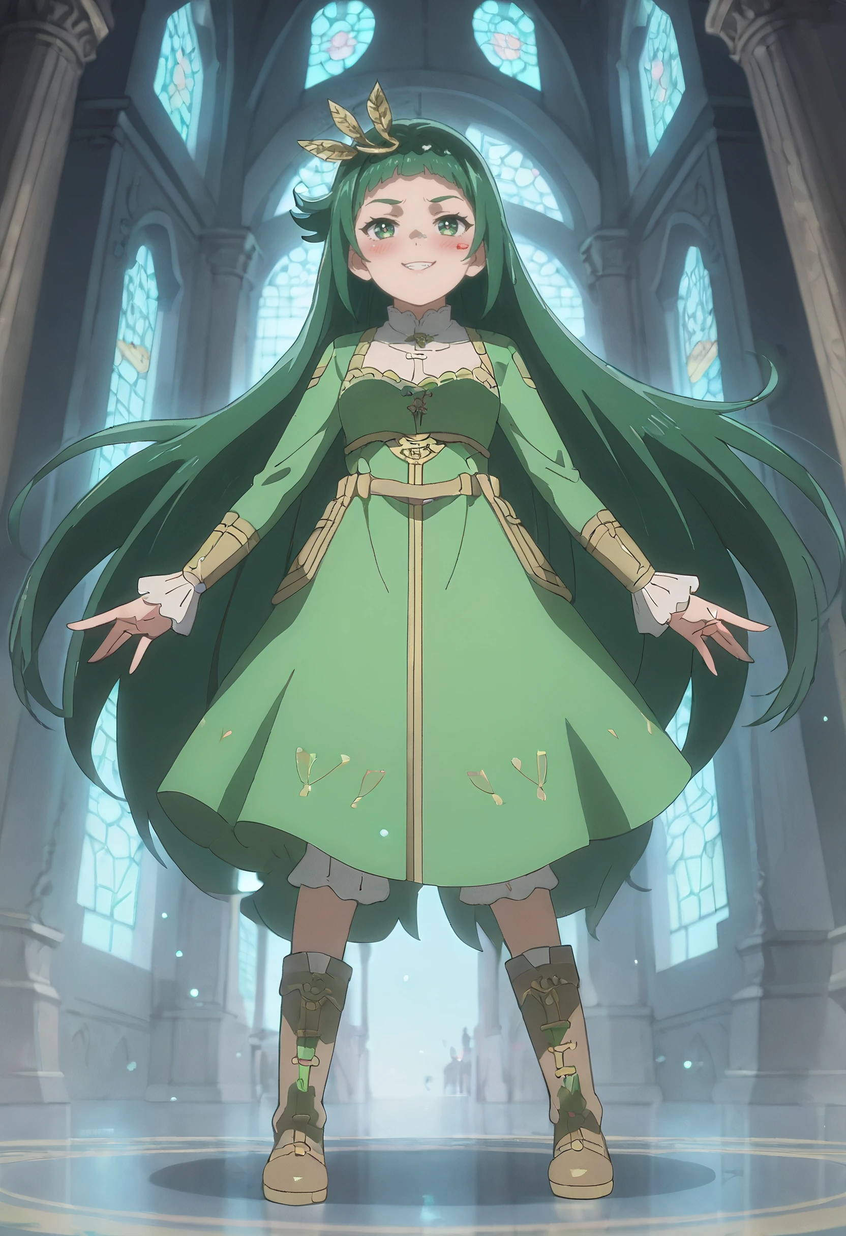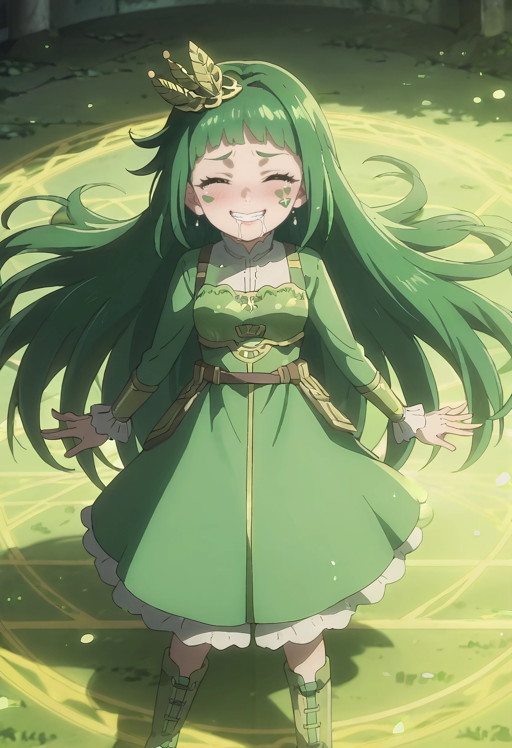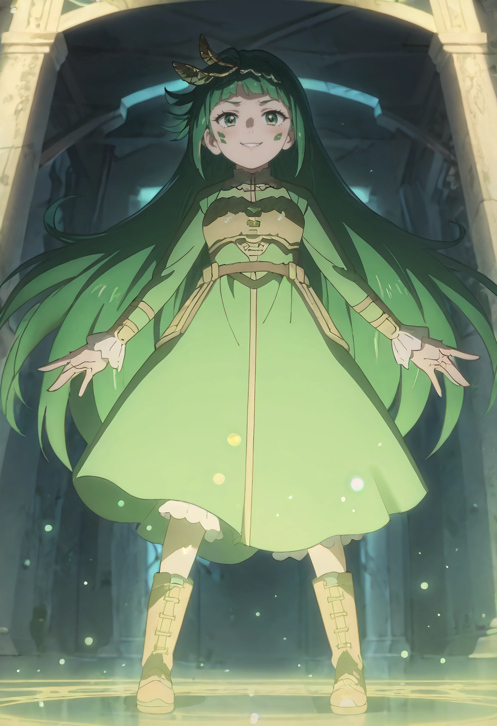 BFeri, long hair, very long hair, multicolored hair, facial mark, green hair,