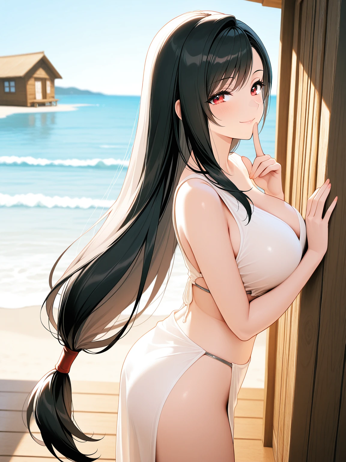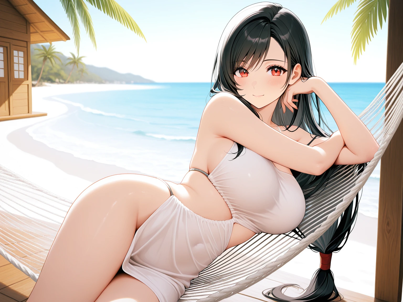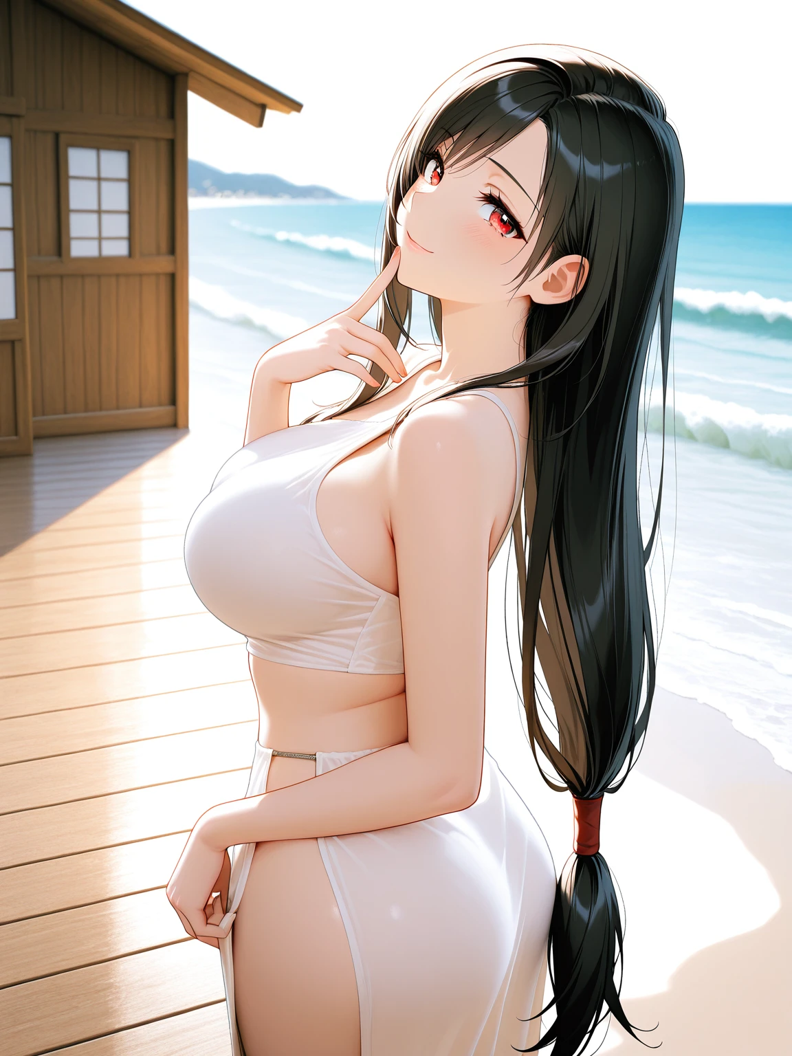 white dress,side slit,sleeveless dress,sideless,single strap,bare shoulders,asymmetrical clothes,