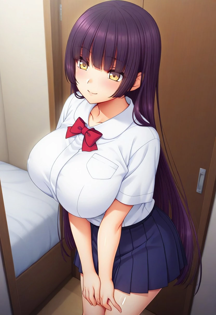 Subaru Orihara, yellow eyes, purple hair, long hair, hime cut,