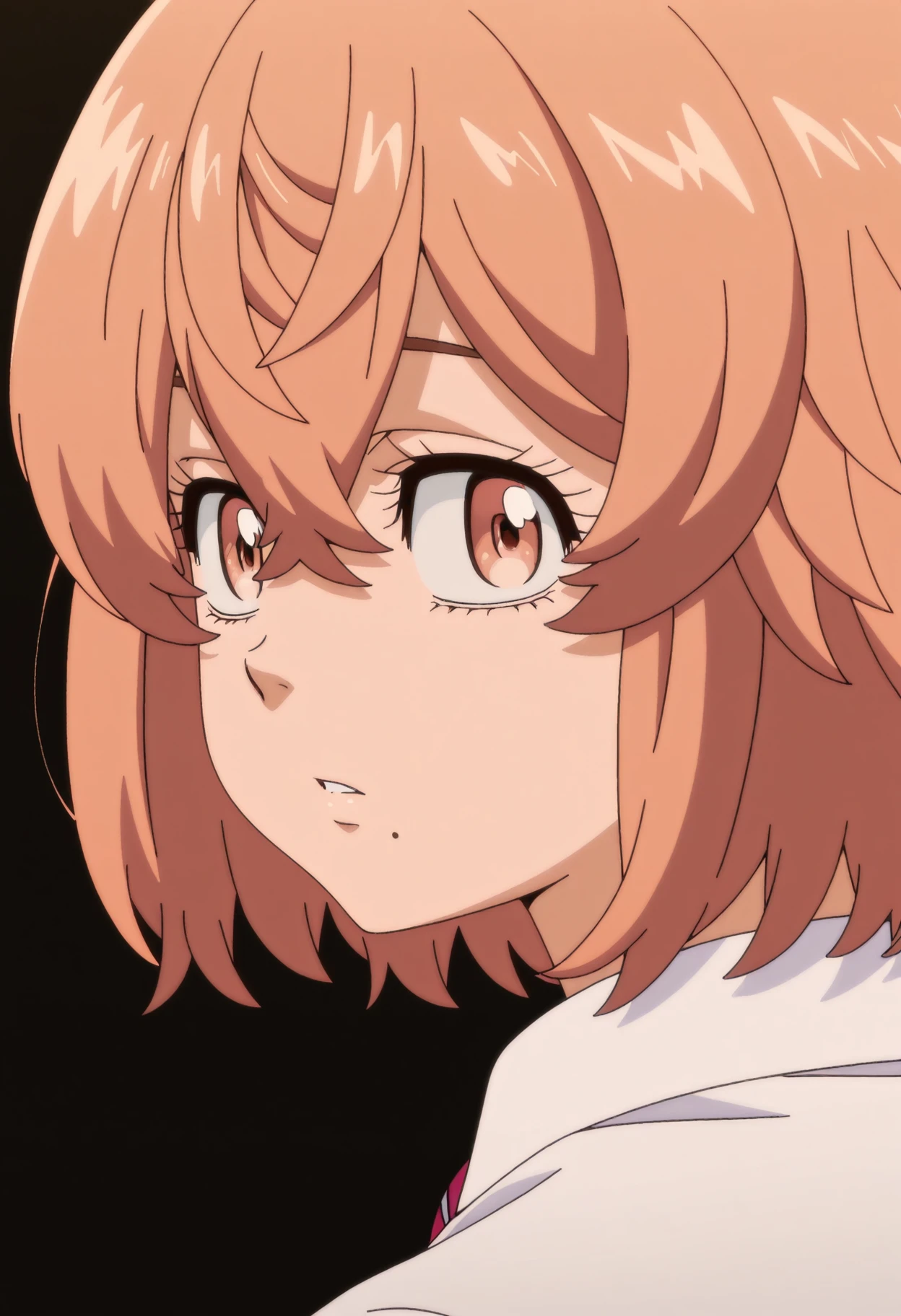 1girl, solo, hinata-tachibana, mole, short hair, brown eyes, mole under mouth, hair between eyes, brown hair, bangs