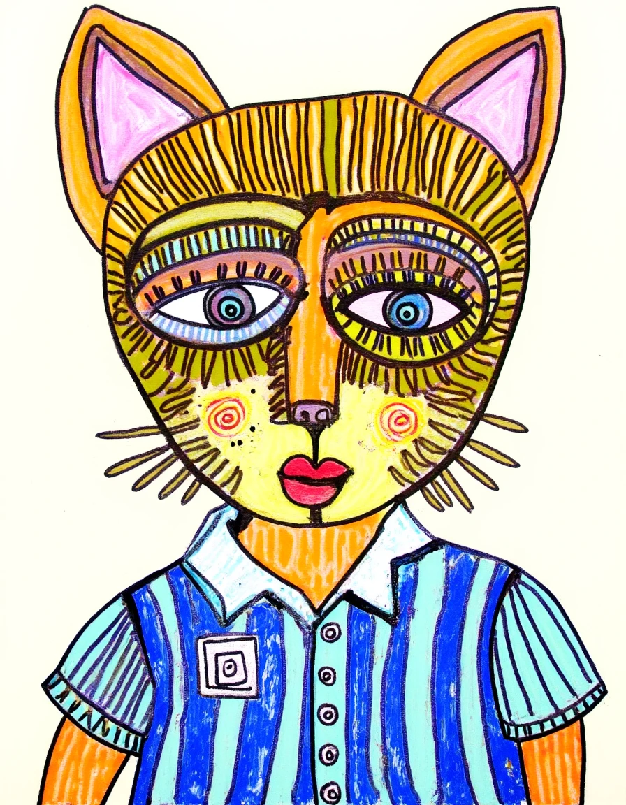 • a painting of a woman with a colorful face in the style of sandra-silberzweig