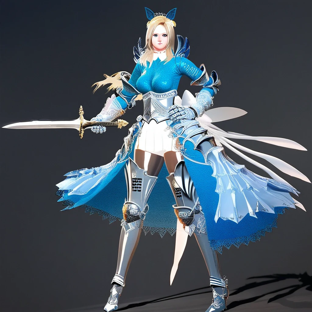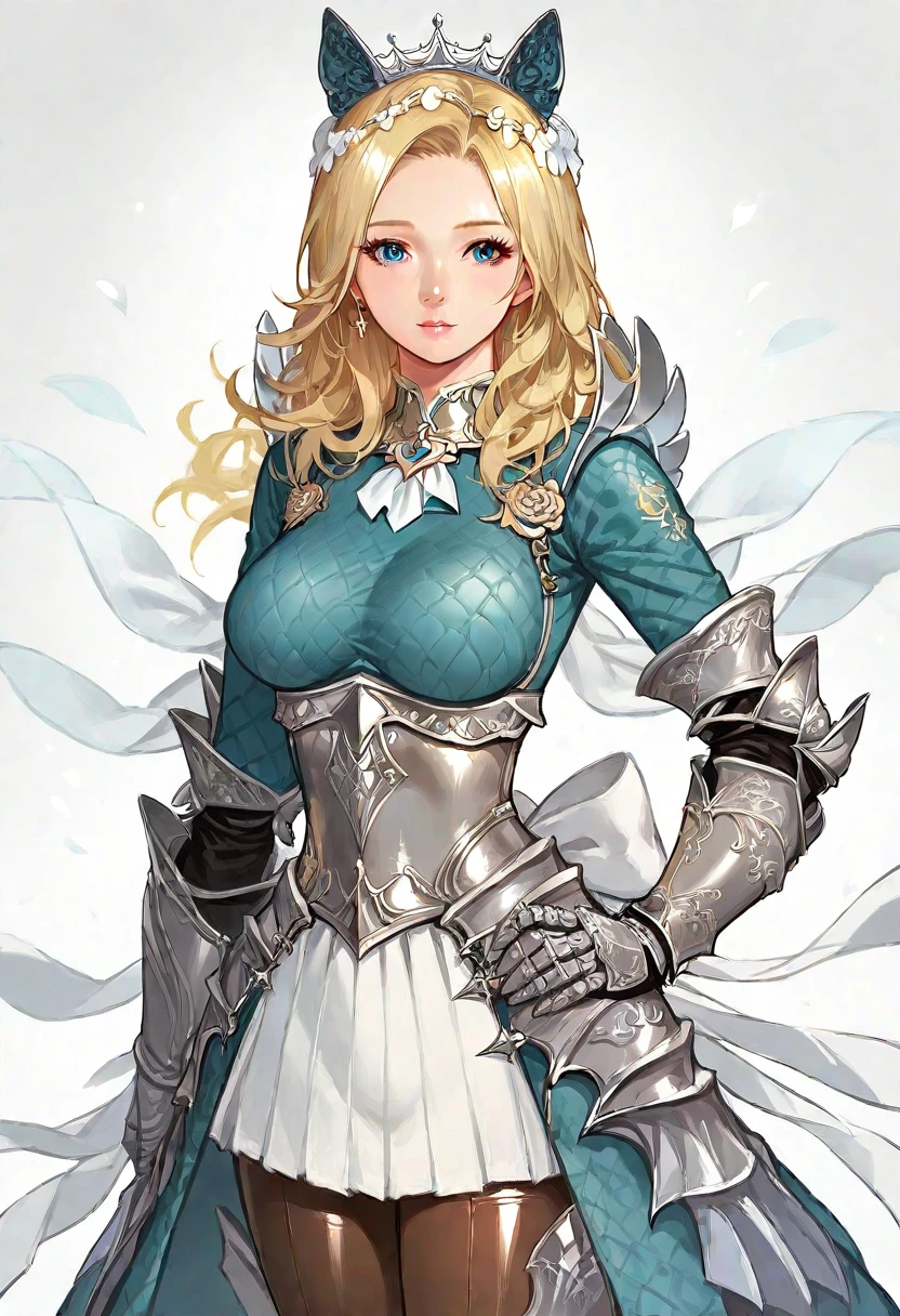 delia_(mabinogi), delia_outfits_1, 1girl, solo, armor, blonde hair, gauntlets, fake animal ears, blue eyes, armored dress, thighhighs, greaves, knight, long hair, armored boots, bootsLugh = delia_outfits_2