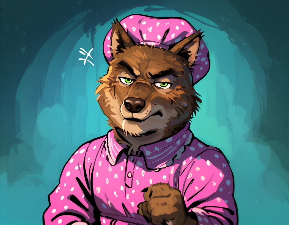To exclude Wolfie's bonnet, type ((bonnet, hat, cap)) on the negative prompt