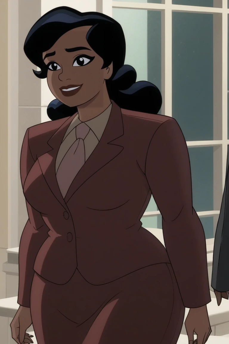 Renee Montoya: Renee_Monto, girl, female, curvy female, black hair, hair bun, black eyes, dark-skinned female, formal, necktie