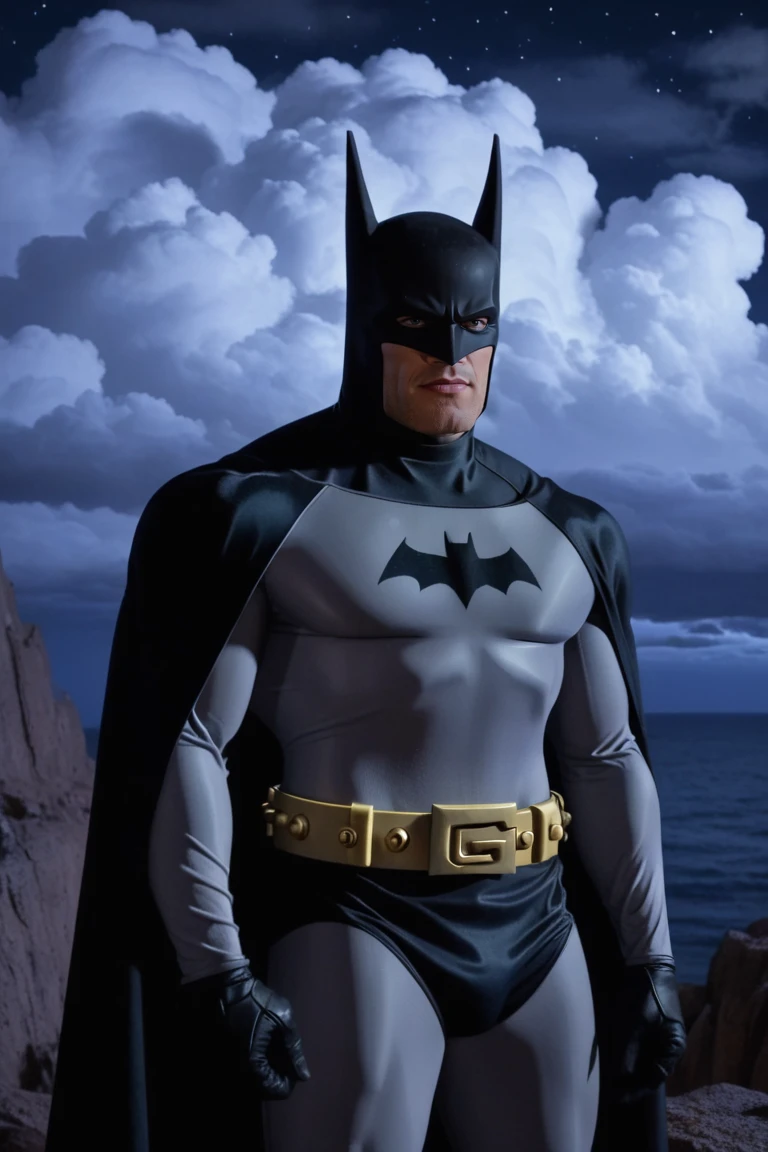 Batman: Bat_man, Batman, black gloves, belt, bodysuit, mask, black cape, superhero, bat ears, grey bodysuit, speedo, boots