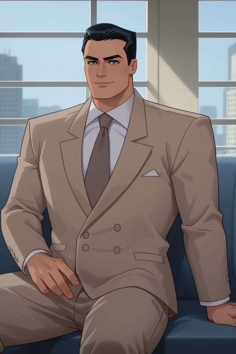 Bruce Wayne: Bruce_Wayne, 1boy, male, short hair, shirt, black hair, jacket, white shirt, necktie, pants,