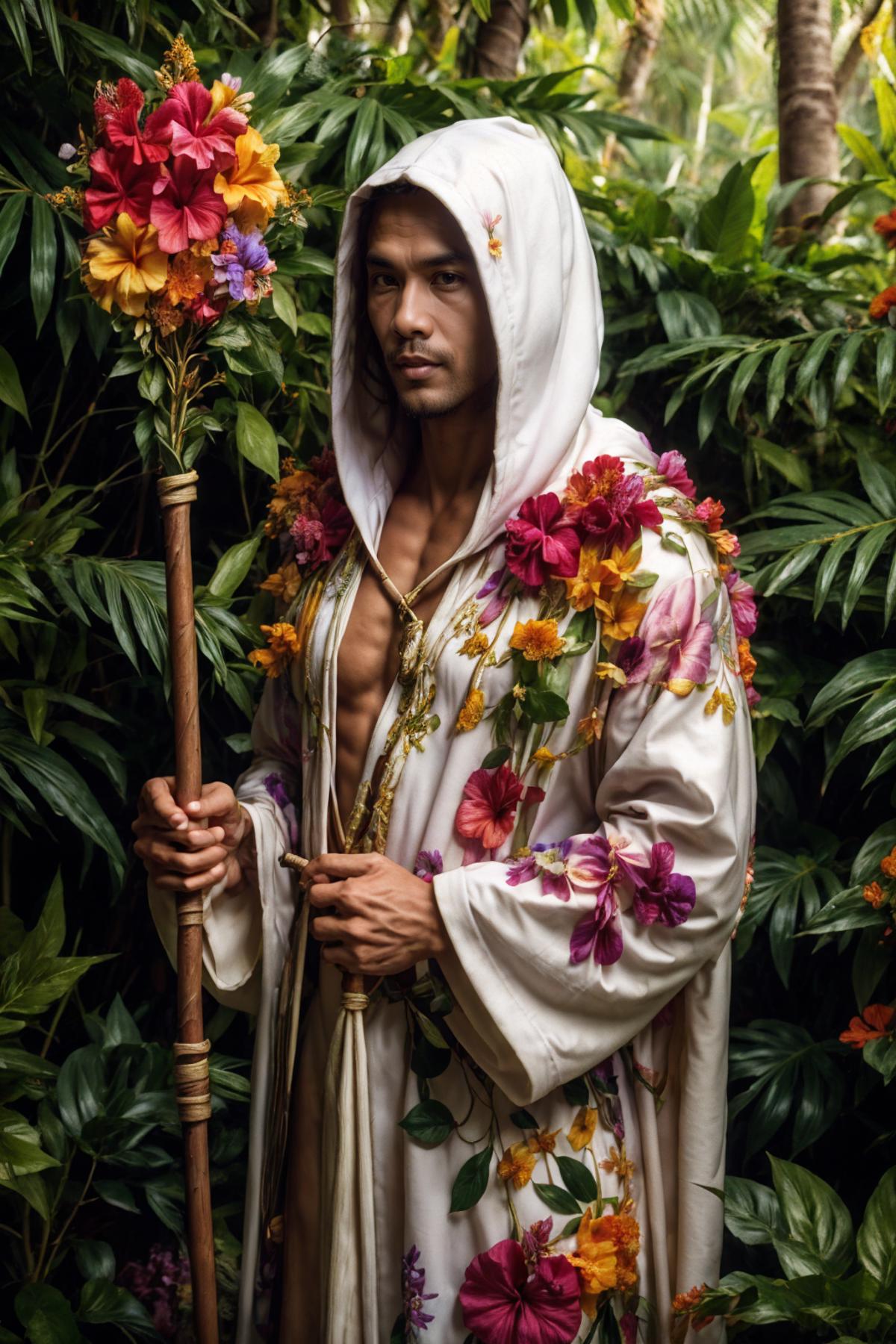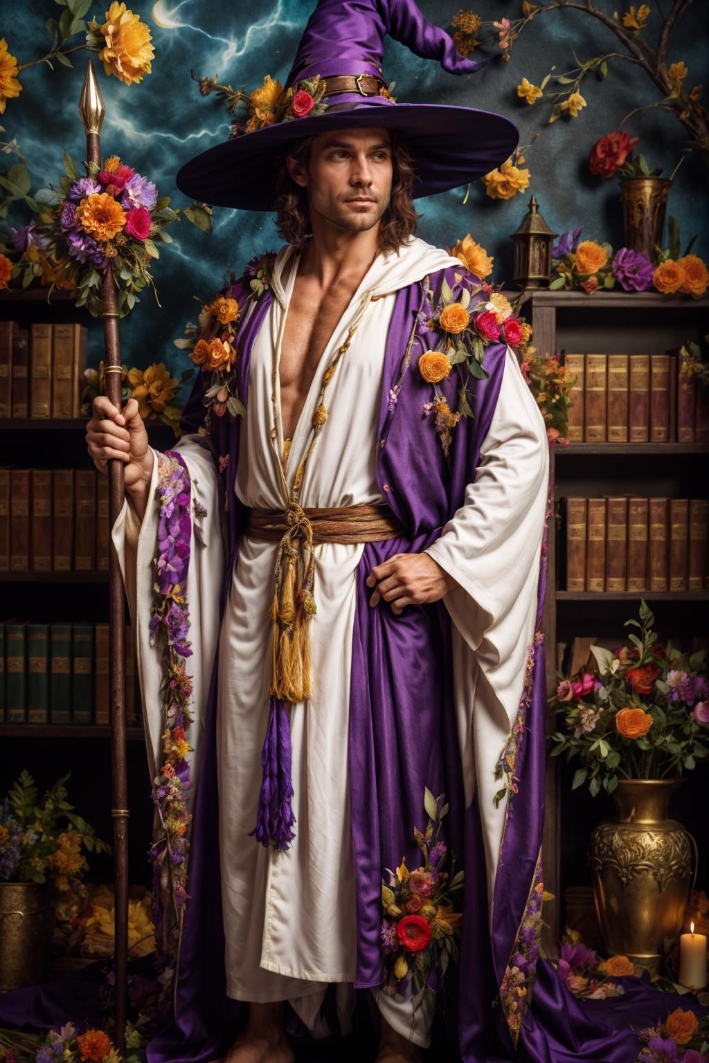 And then just add armor or clothing prompts that's specific to the armor set. For example: "flower wizard robe, holding staff, wizard hat".