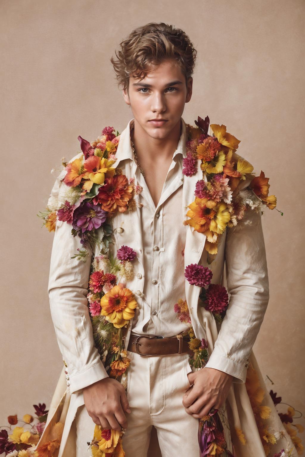 Note: Apparently you can control what kind of flower that appears on the armor a little (see preview images), but it probably depends on the model you're using and whether or not it has data on specific flower species.