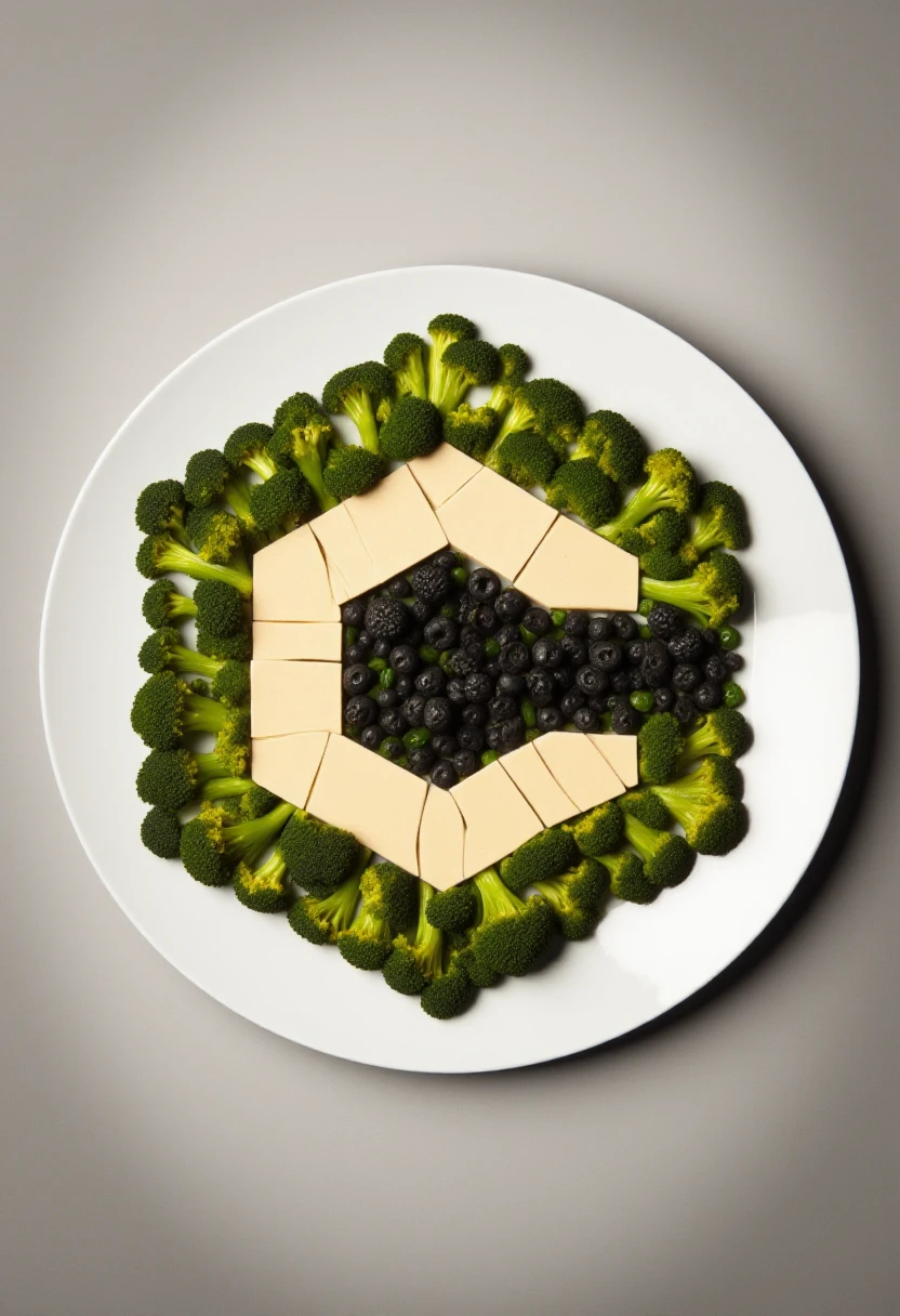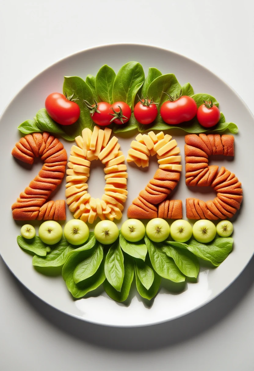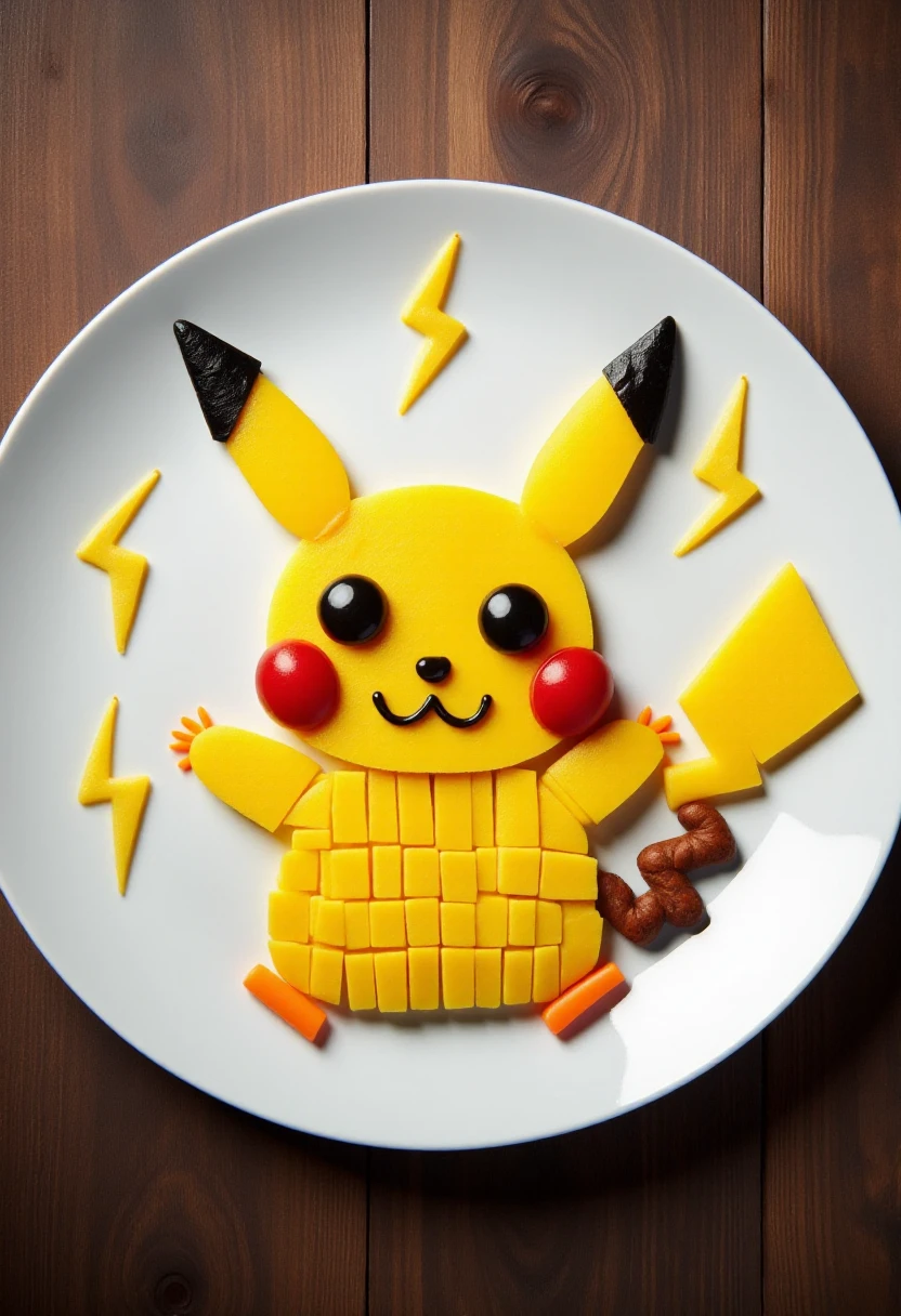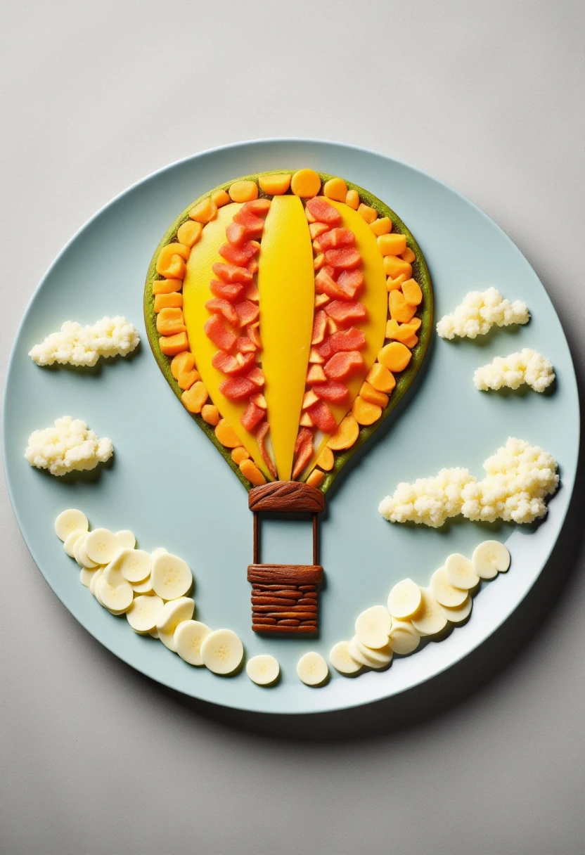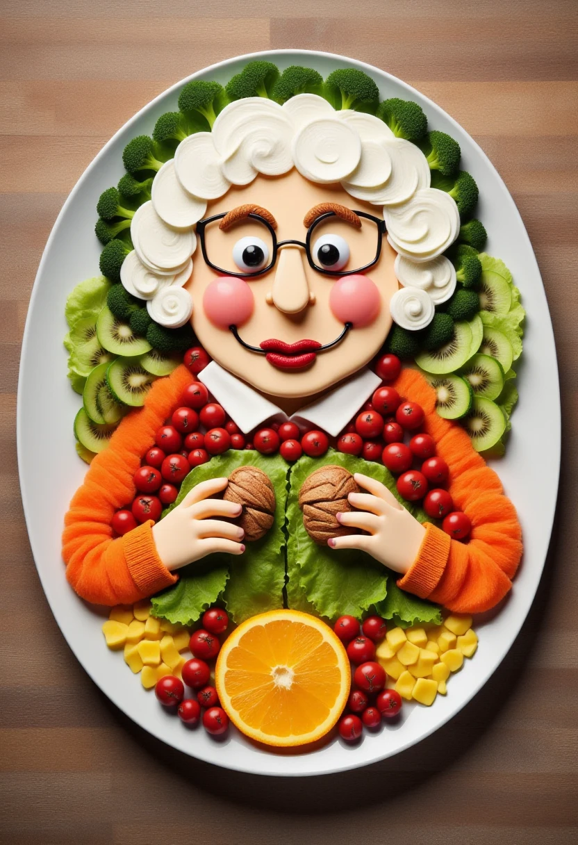 Photograph showcasing a meticulously arranged plate of food art, designed to resemble (SUBJECT).