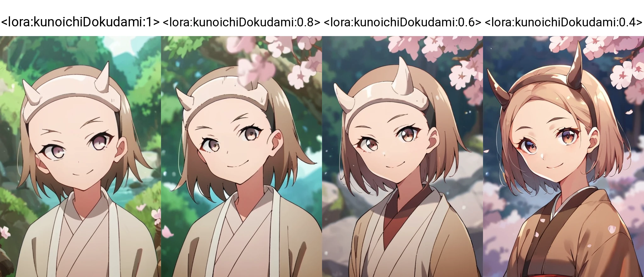 kunoichiDokudami, japanese clothes, hairband horns, smileWould you like to have a model of a character? Contact me; I can assist you