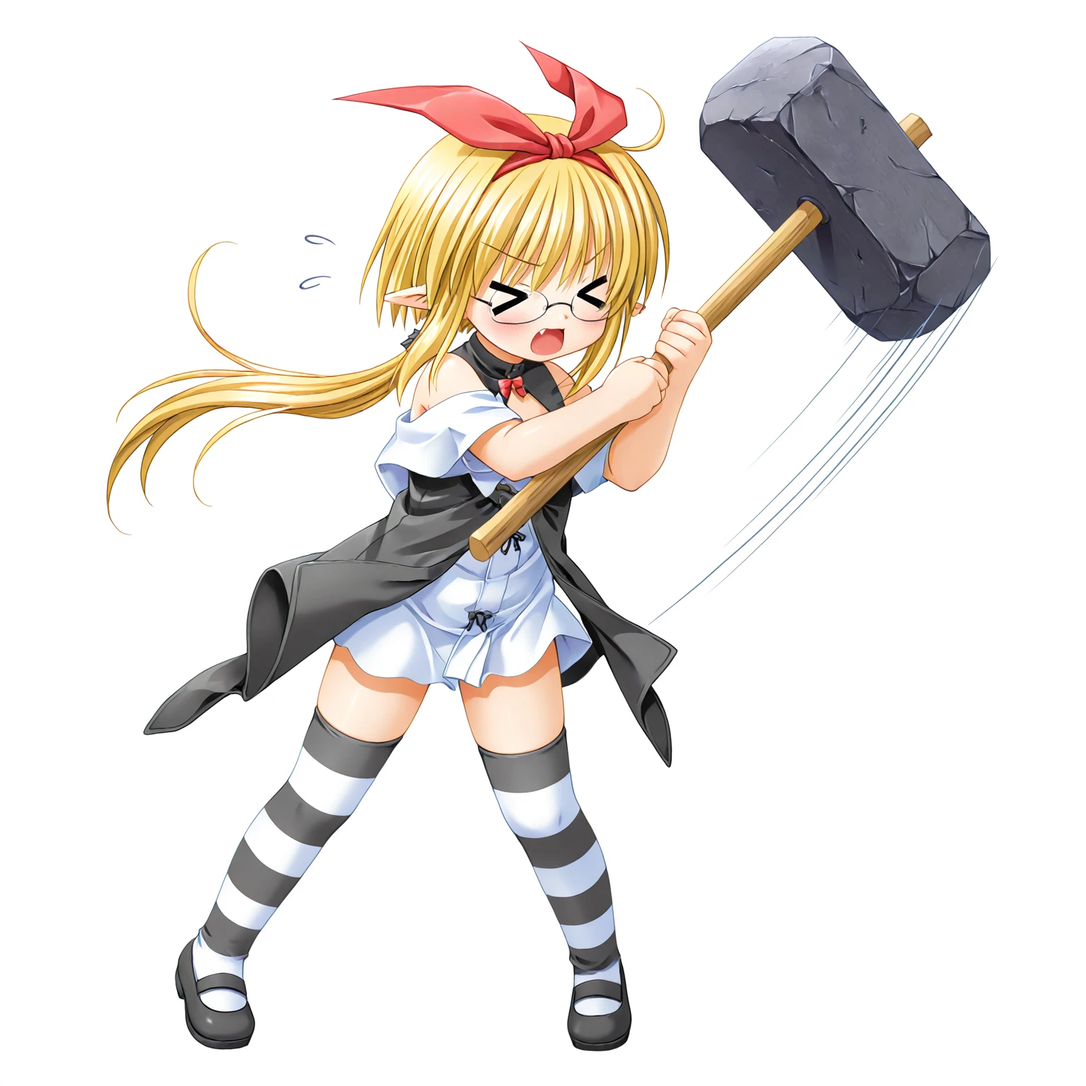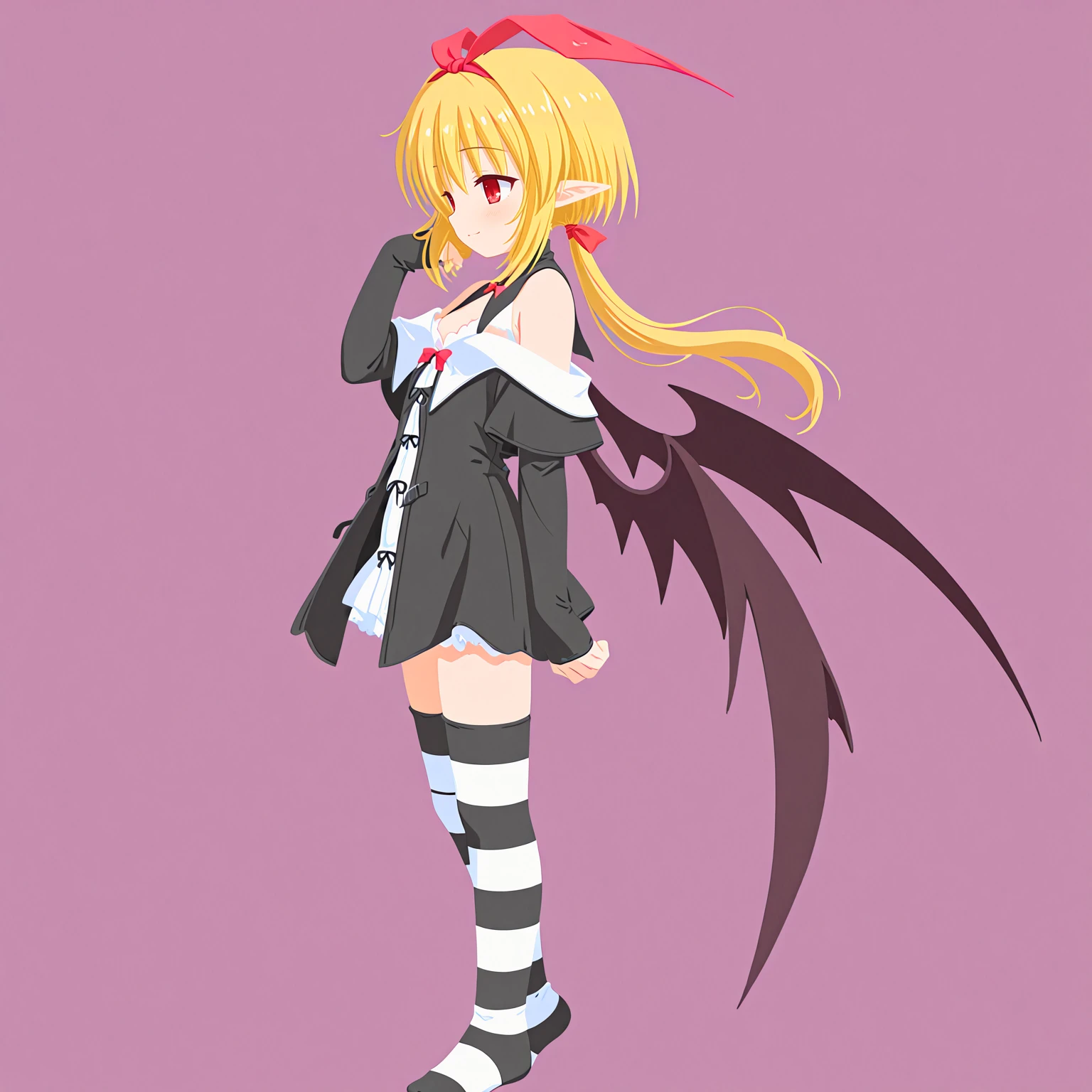 Default outfit: succuwear, bare shoulders, thighhighs, striped thighhighs