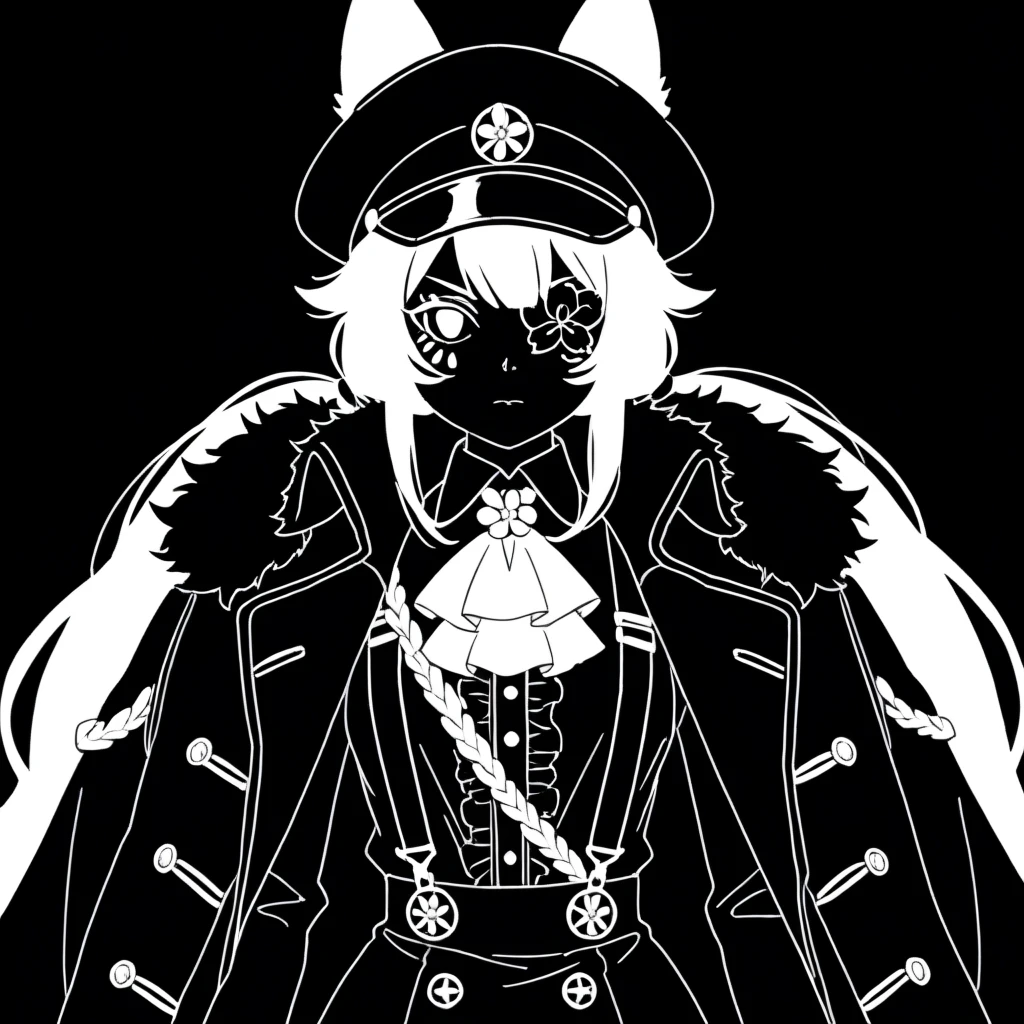 I intend to make a LoRA that give everything black, blank eyes, with only white lineart, and will color white to some part of accessories like "coat, button, mask, flower print, etc"